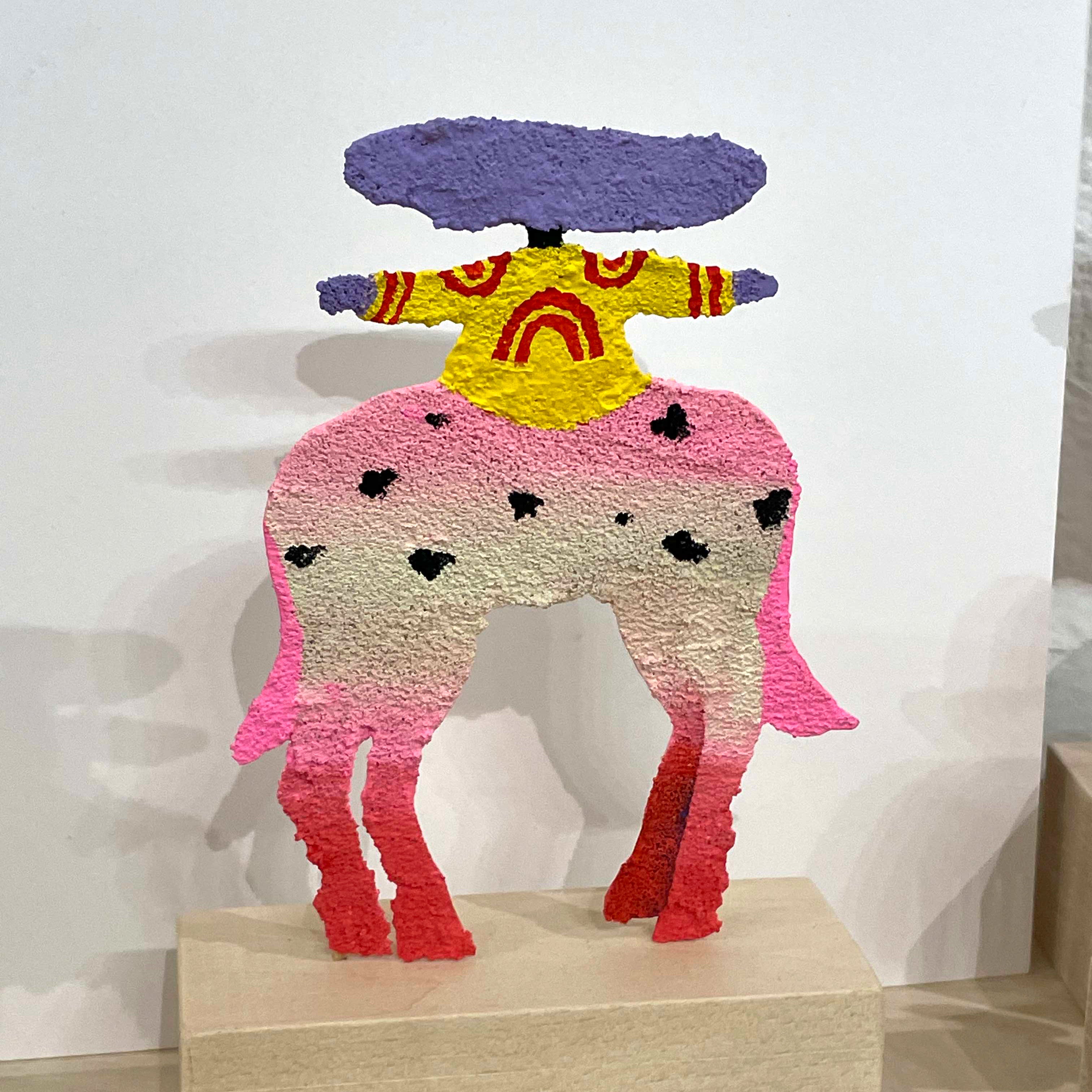 Paper sculpture, acrylic, pumice gel, and gouache.