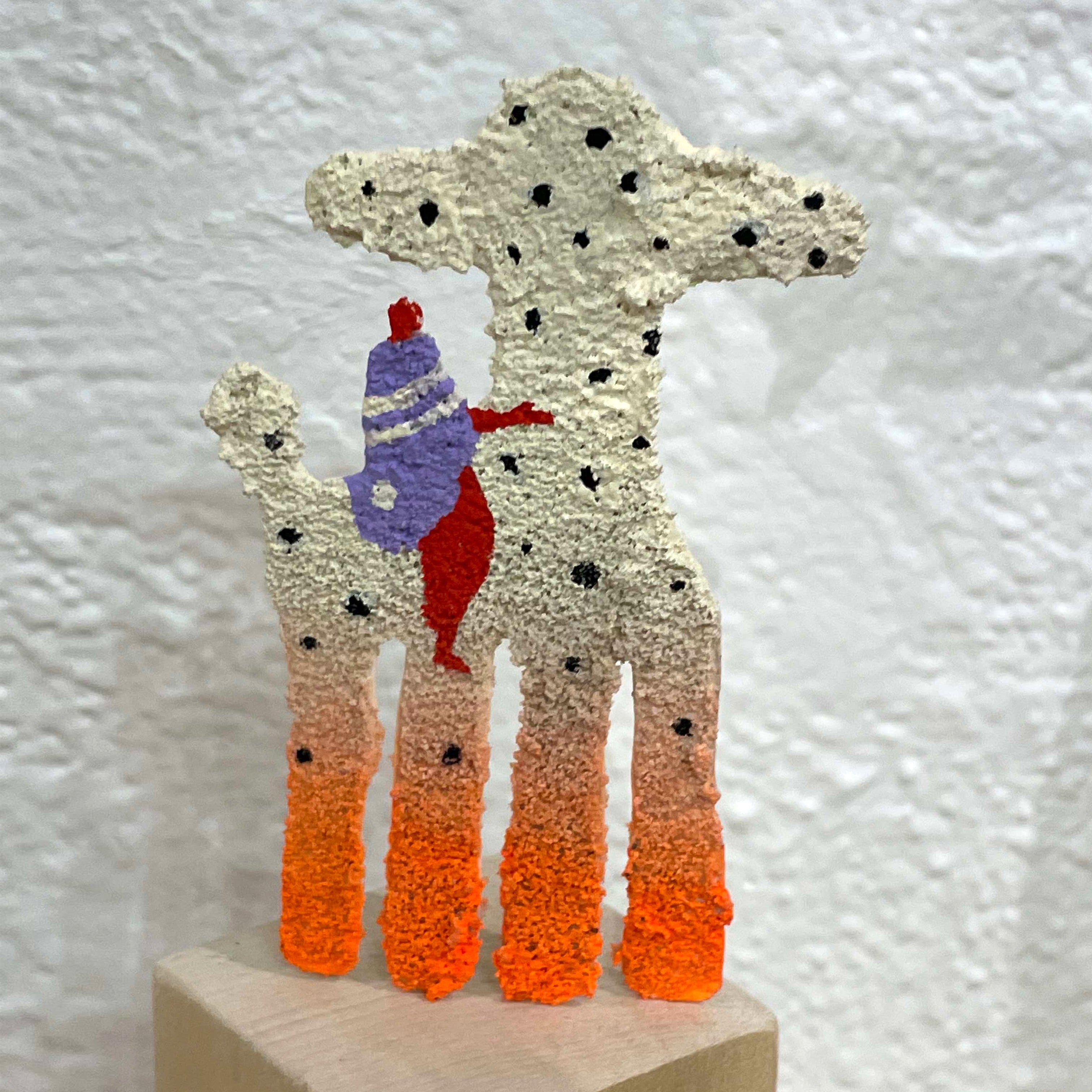 Paper sculpture, acrylic, pumice gel, and gouache.