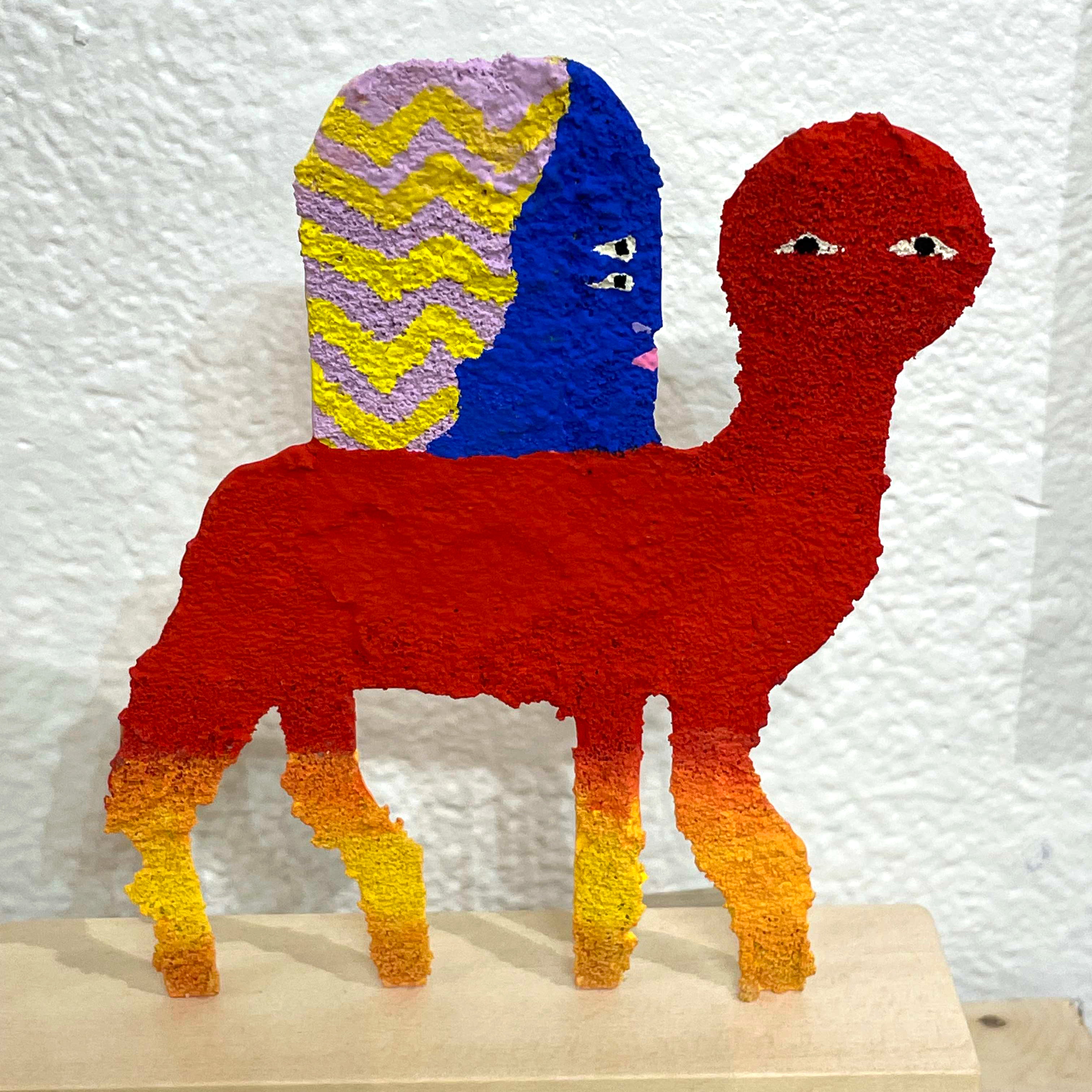Paper sculpture, acrylic, pumice gel, and gouache.