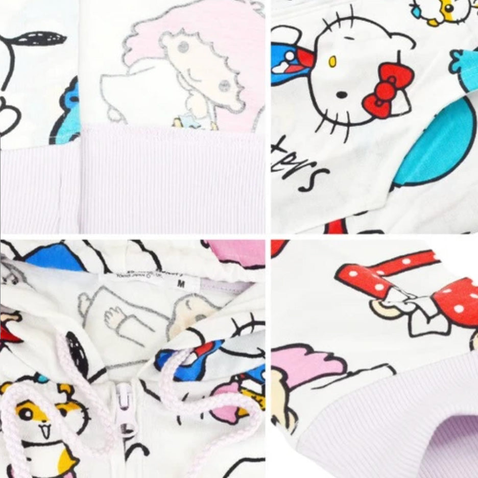 Sanrio Characters All-Over-Pattern Zip-up Hoody Jacket (White)