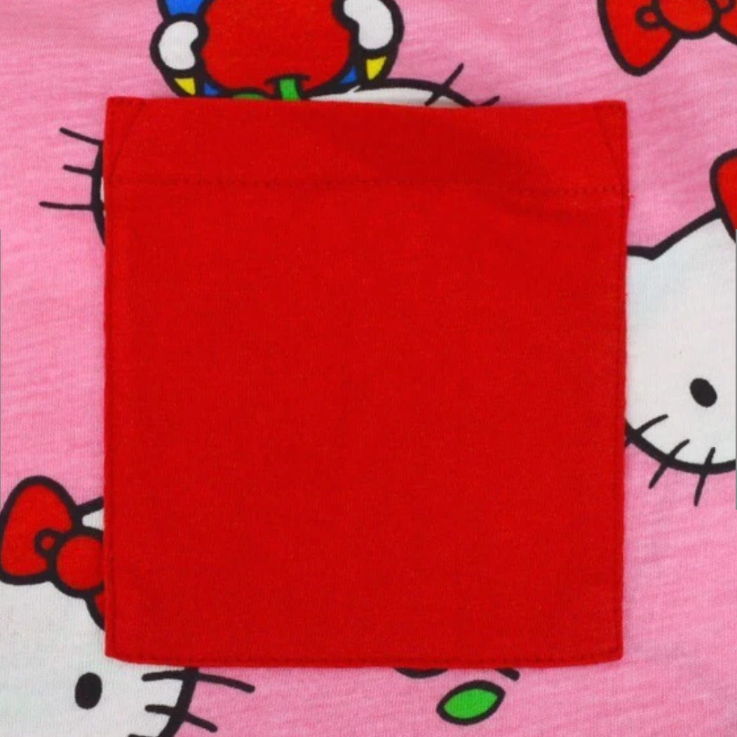 Repeating pattern of everyone's fave kitty - Hello Kitty! On a bright pink colored shirt with a pocket, a great statement piece to add to any Sanrio lover's closet.