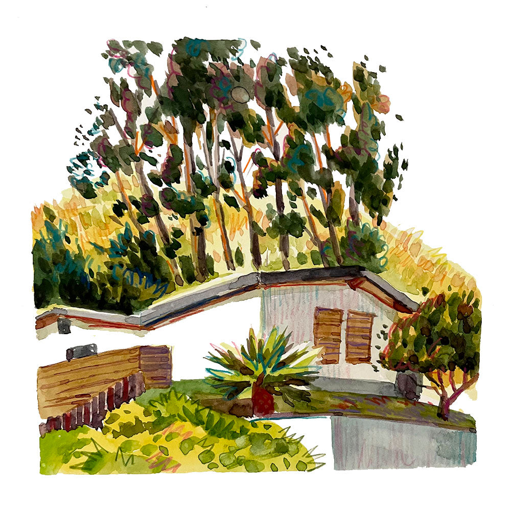 Colored pencil and watercolor on paper.
