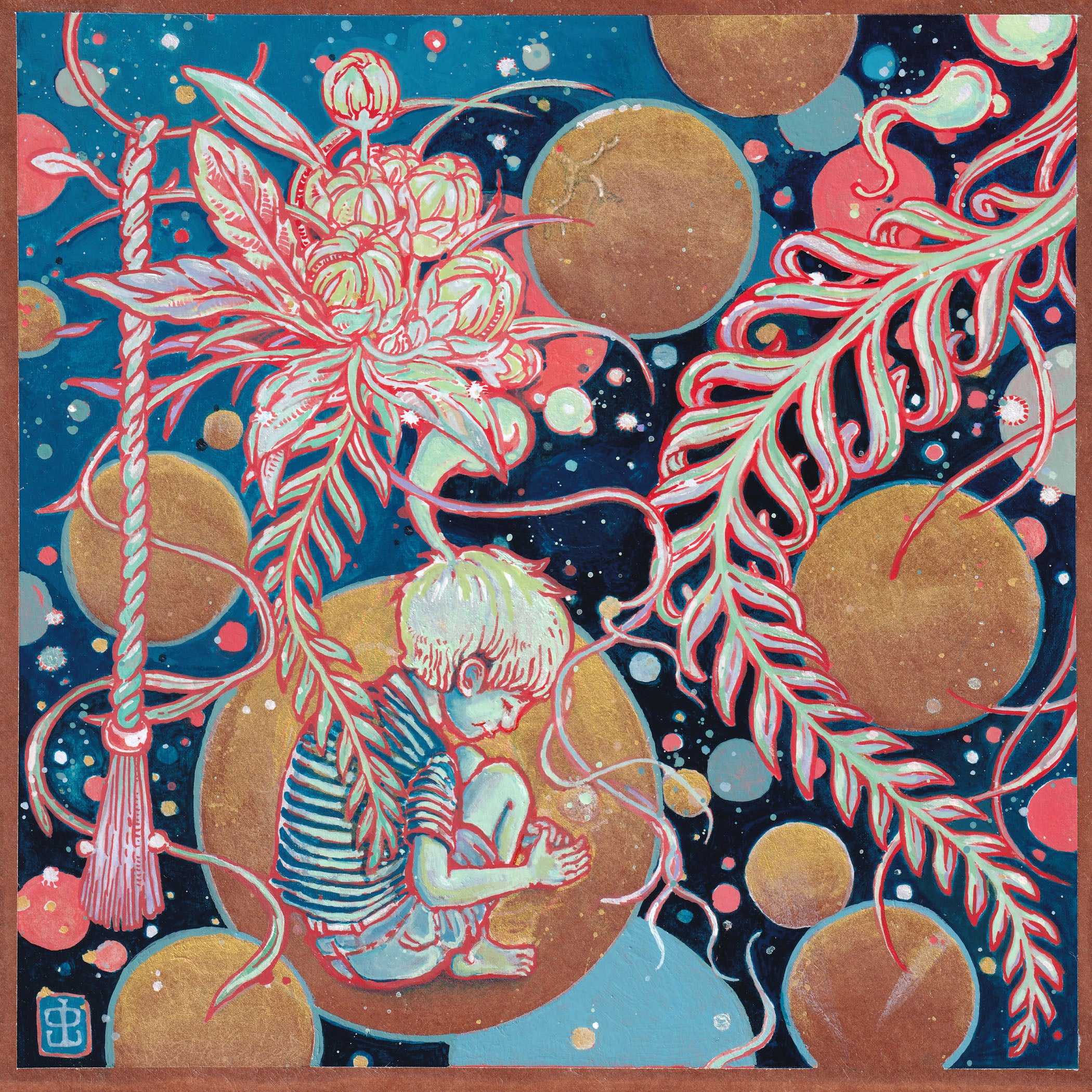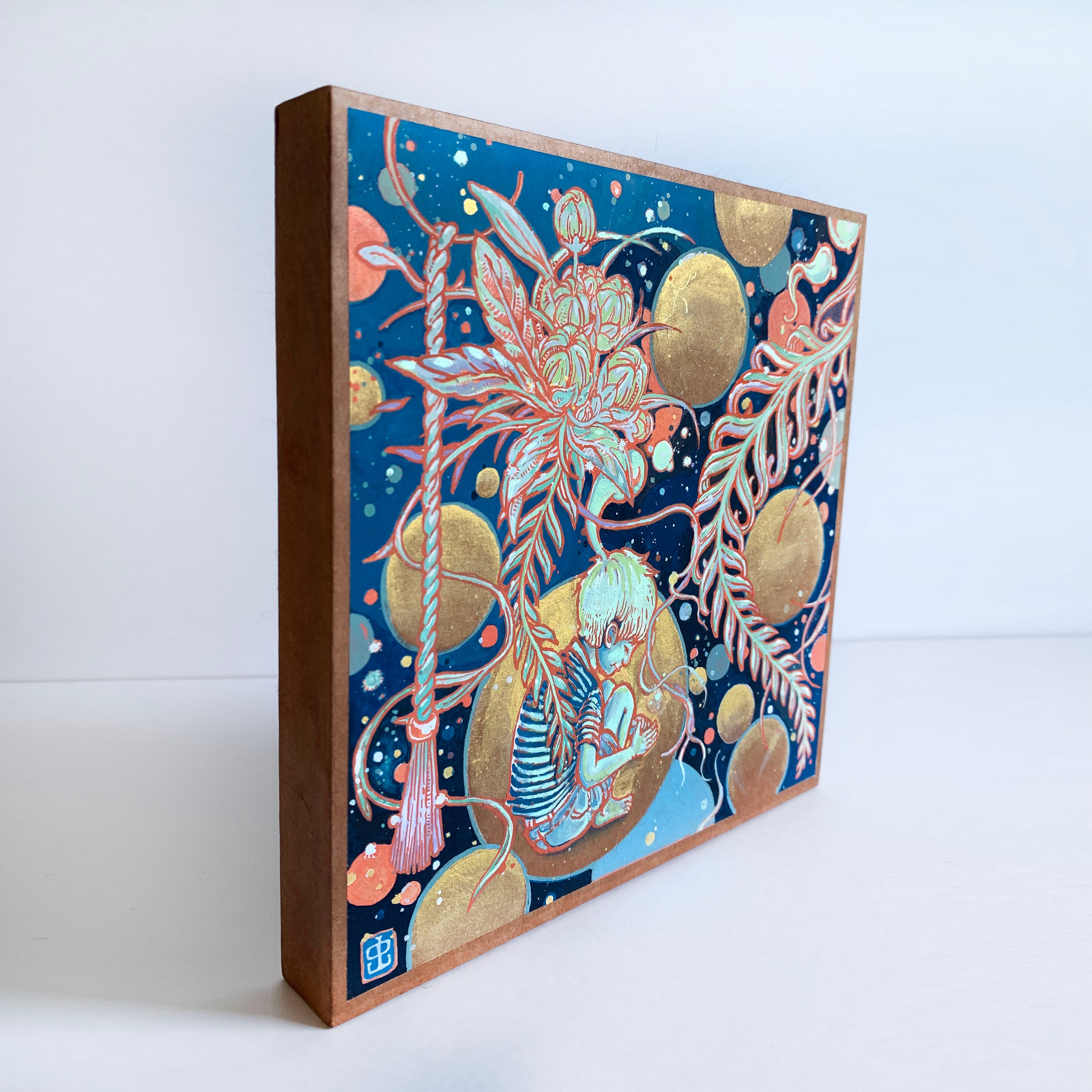 on Persimmon dye Washi-paper mounted on Wood-panel.