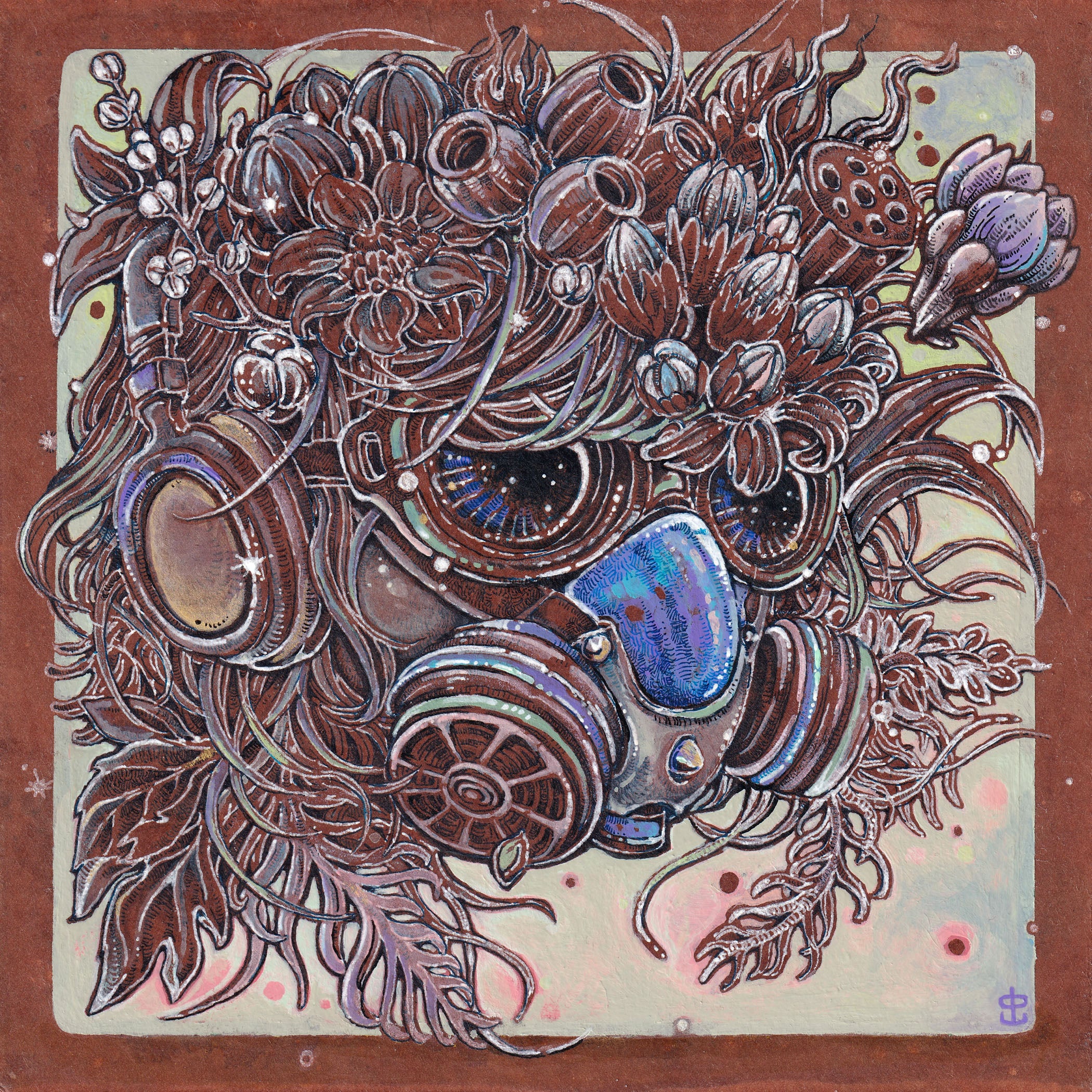 on Persimmon dye Washi-paper mounted on Wood-panel.