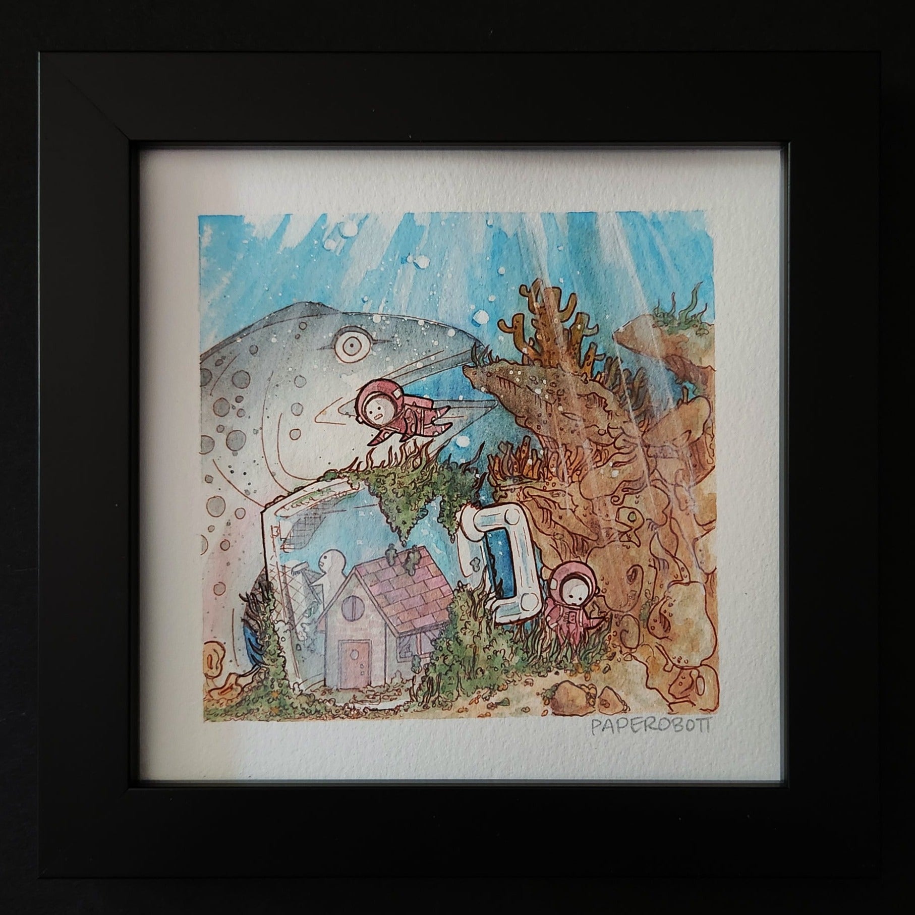 This piece is part of Submerged: An Underwater Themed Art Exhibition at Giant Robot Store running from August 19th, 2023 - September 3rd, 2023.