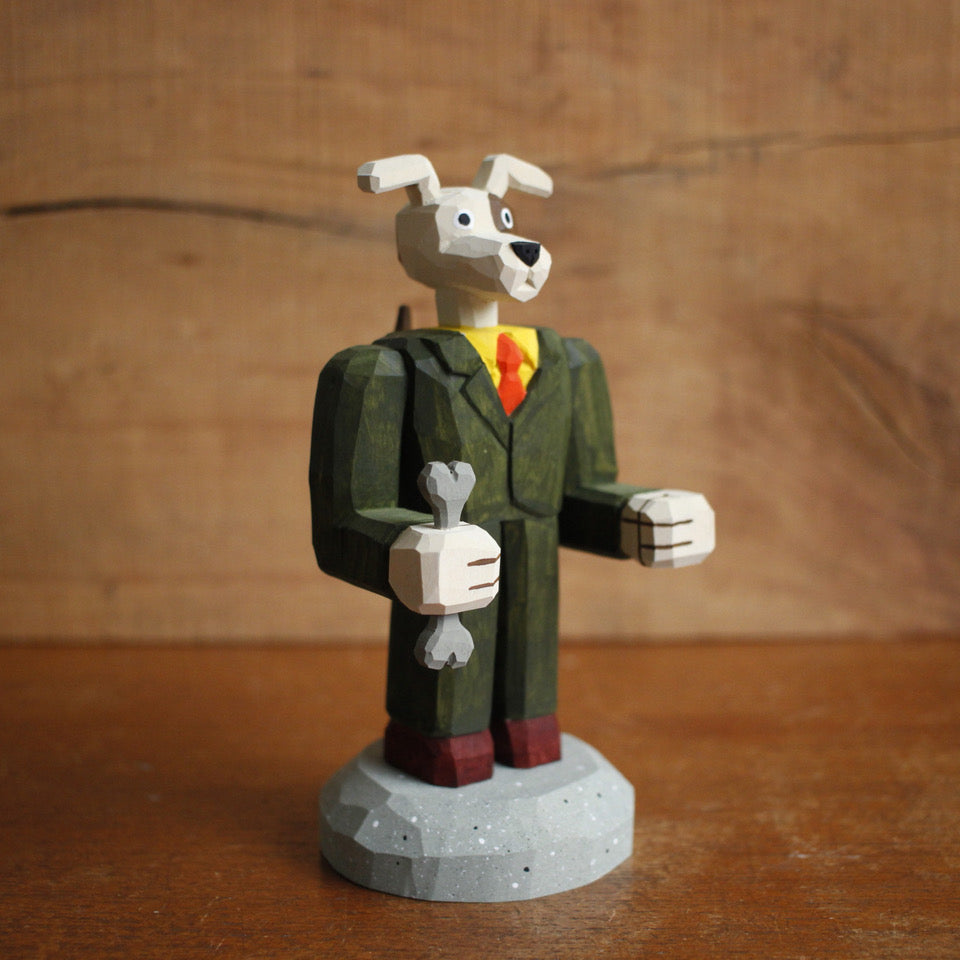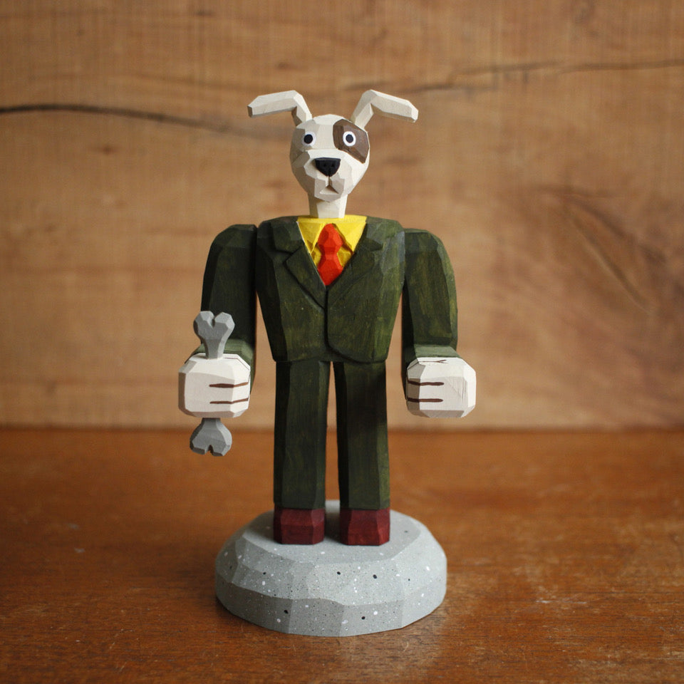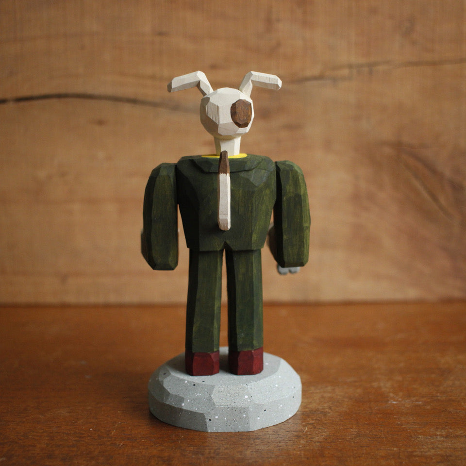 Hand-carved pine wood, acrylic paint, beeswax finish.