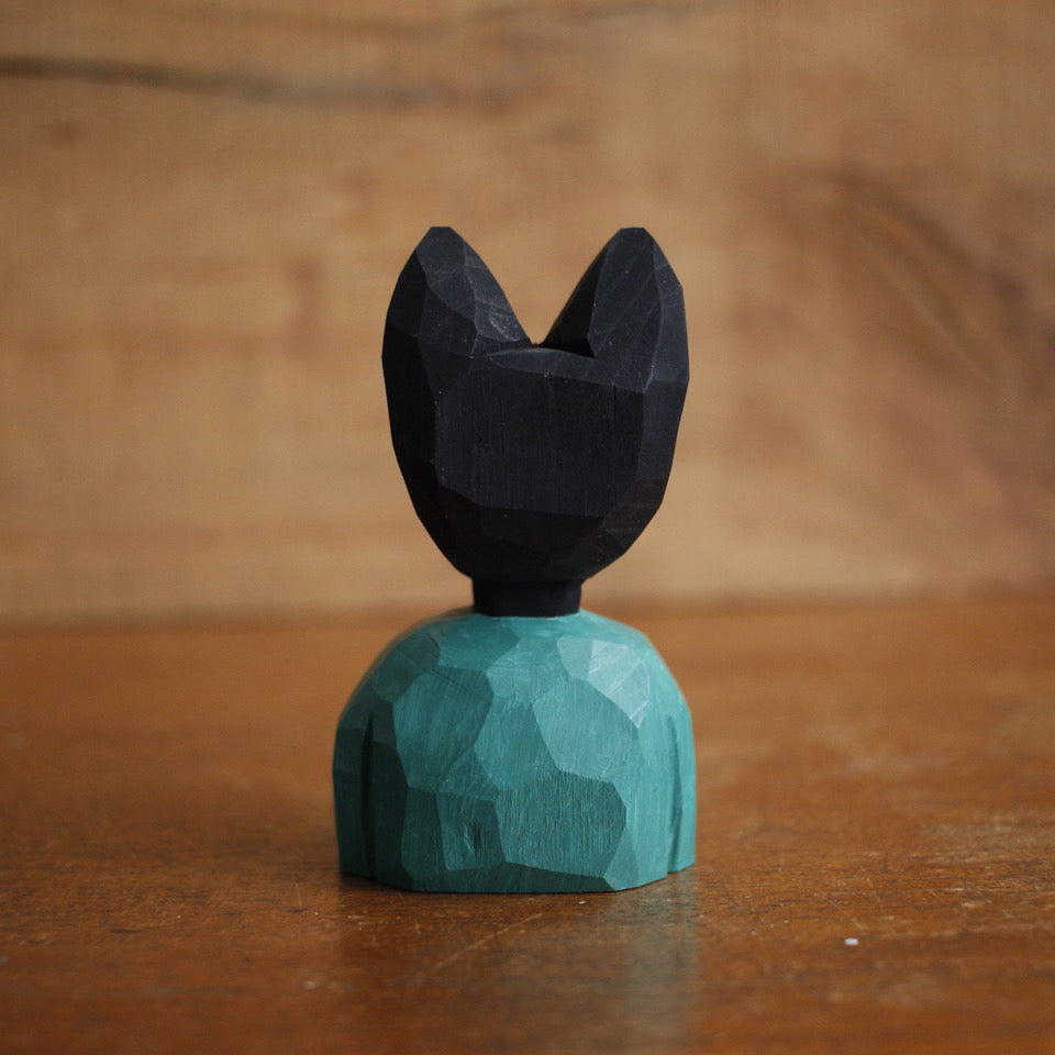 Hand-carved pine wood, acrylic paint, beeswax finish.