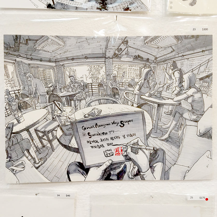 This piece is part of the exhibition titled SuperAni at GR2 Gallery featuring Kim Jung Gi, Karl Kopinski, Nicolas Nemiri, Miss Jisu, Dongho Kim and Peter Han.