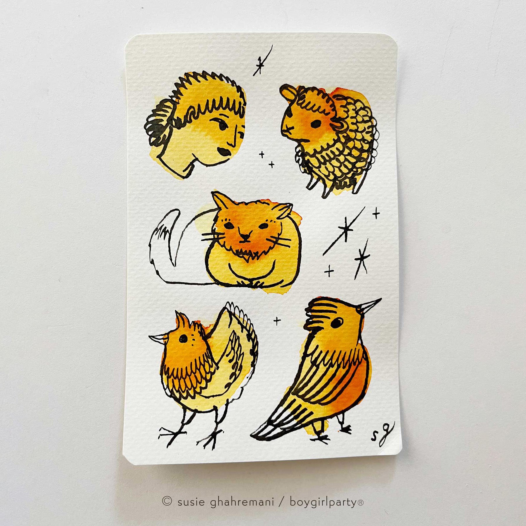 Fountain pen ink and sumi ink on paper. Piece is unframed.