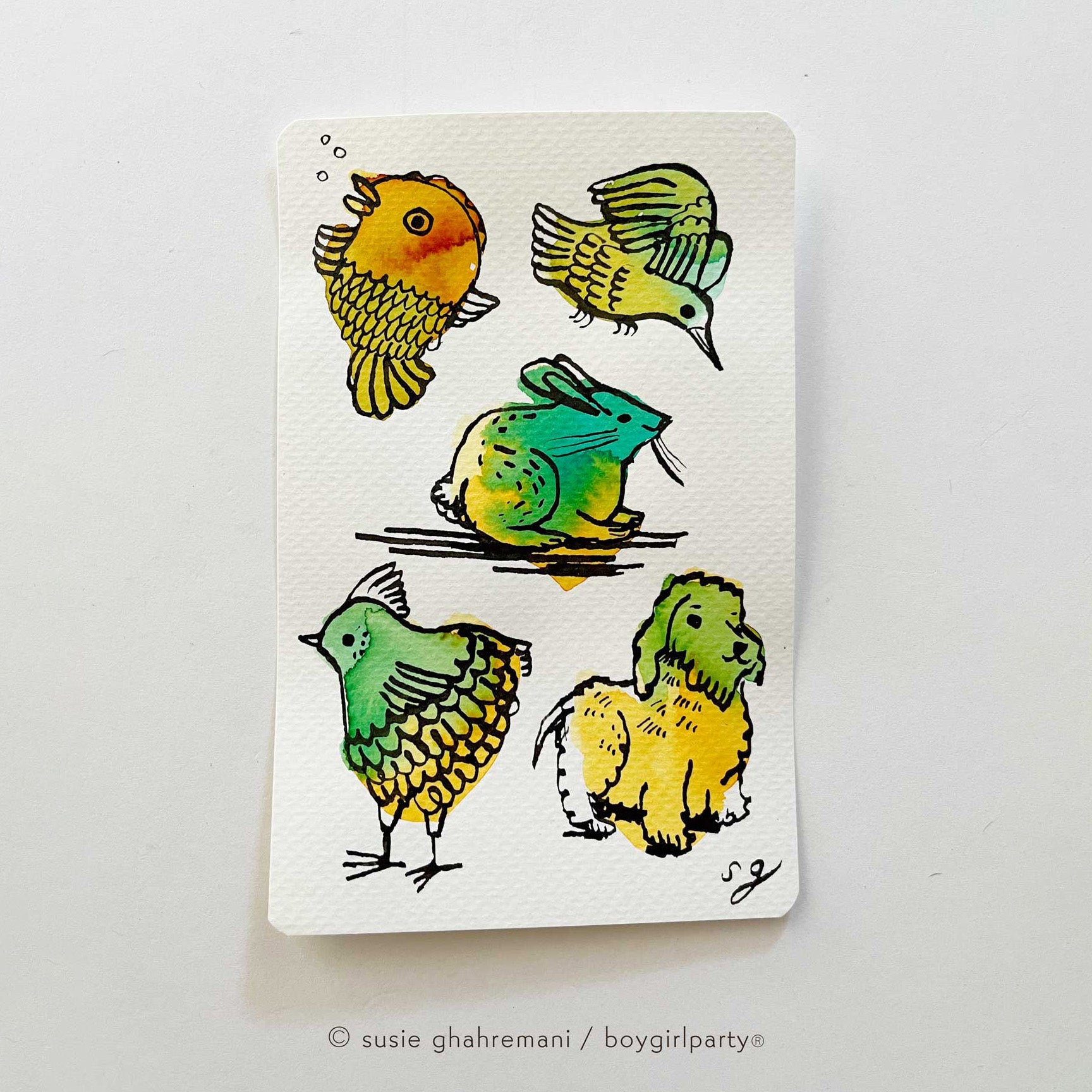 Fountain pen ink and sumi ink on paper. Piece is unframed.