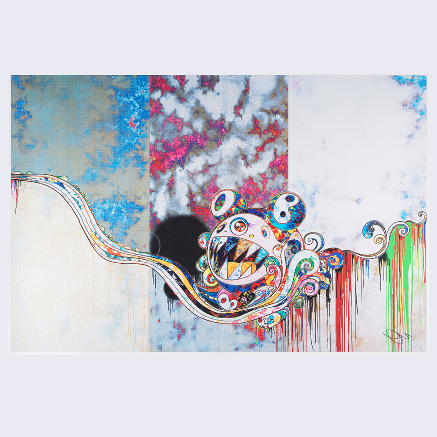 Takashi Murakami is one of the founding members of the Superflat movement whose pop art work has been exhibited around the world. His Kaikai Kiki workshop has spawned many younger talented artists including Aya Takano and Chiho Aoshima. This print features his famous DOB character.