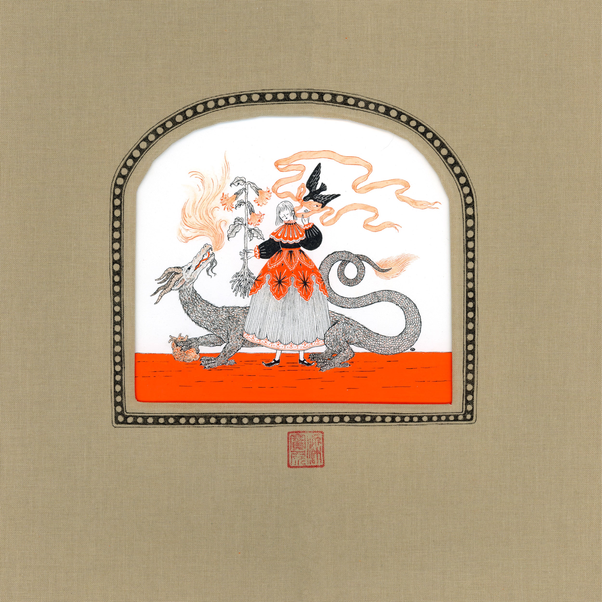 Artwork measures 6 x 5 inches, frame measures 13 x 13 inches.