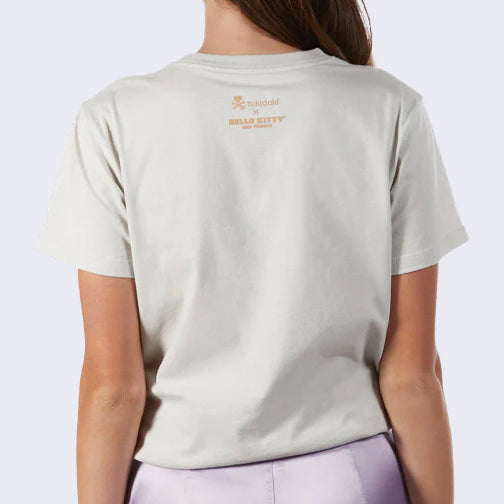 tokidoki x Hello Kitty and Friends written in the top center on back of tee.
