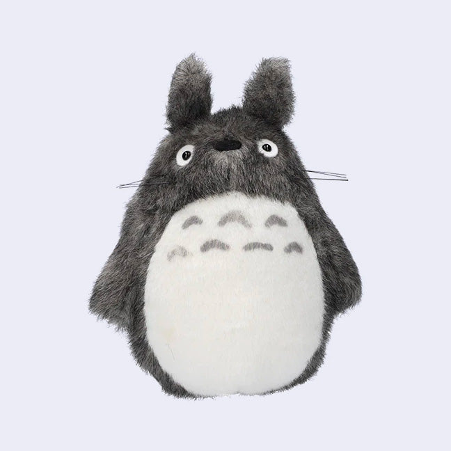 Straight from Hayao Miyazaki's My Neighbor Totoro (Tonari no Totoro)! Totoro is squishy, stands approximately 10" tall from base to ear, and he has slightly coarser fur.