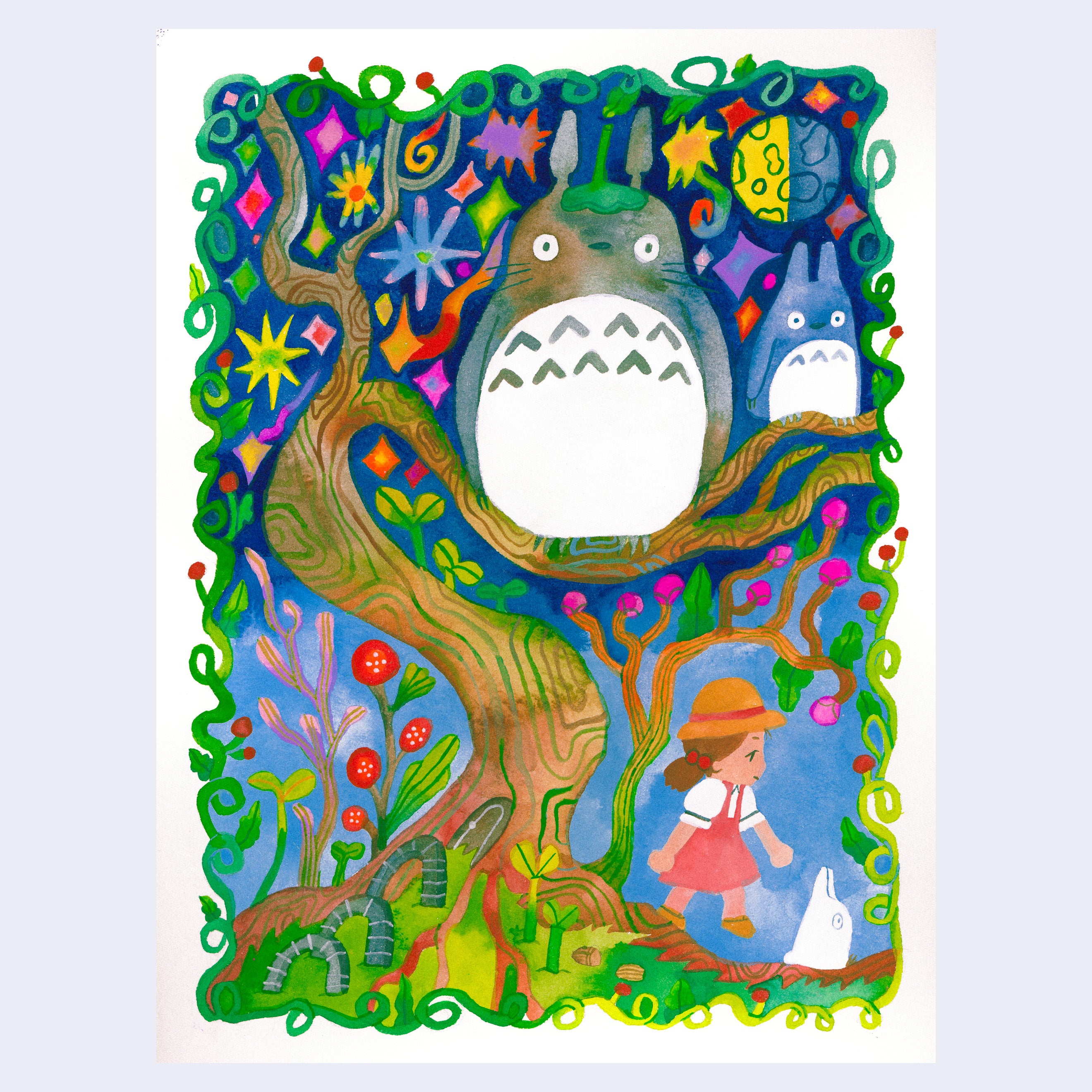 This piece is part of Totoro Show 2023: A Ghibli Universe Art Exhibition at Giant Robot Store running from December 16th, 2023 - January 1st, 2024.