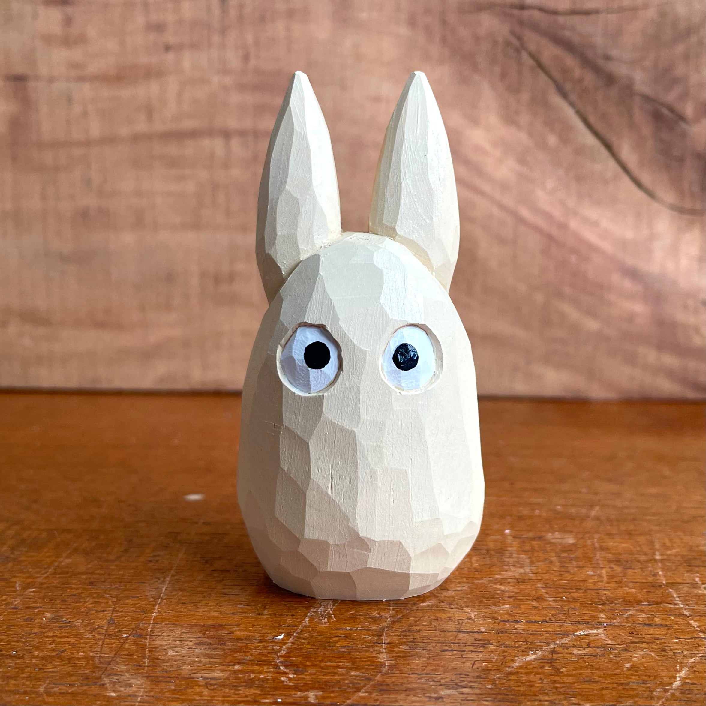 Hand-carved wood, acrylic paint and beeswax finish.