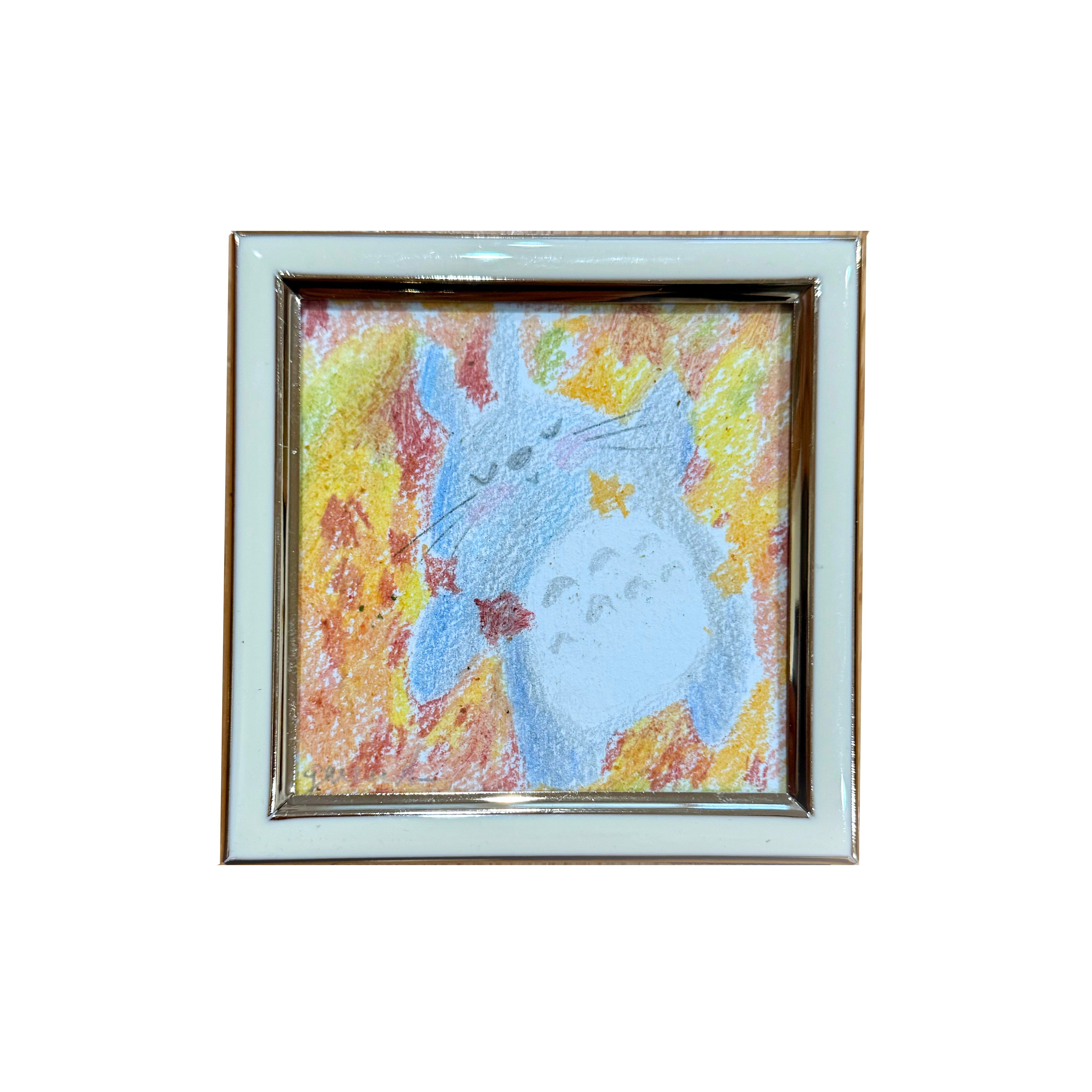 Artwork measures 4 x 4 inches, framed to 5.75 x 5.75 inches.