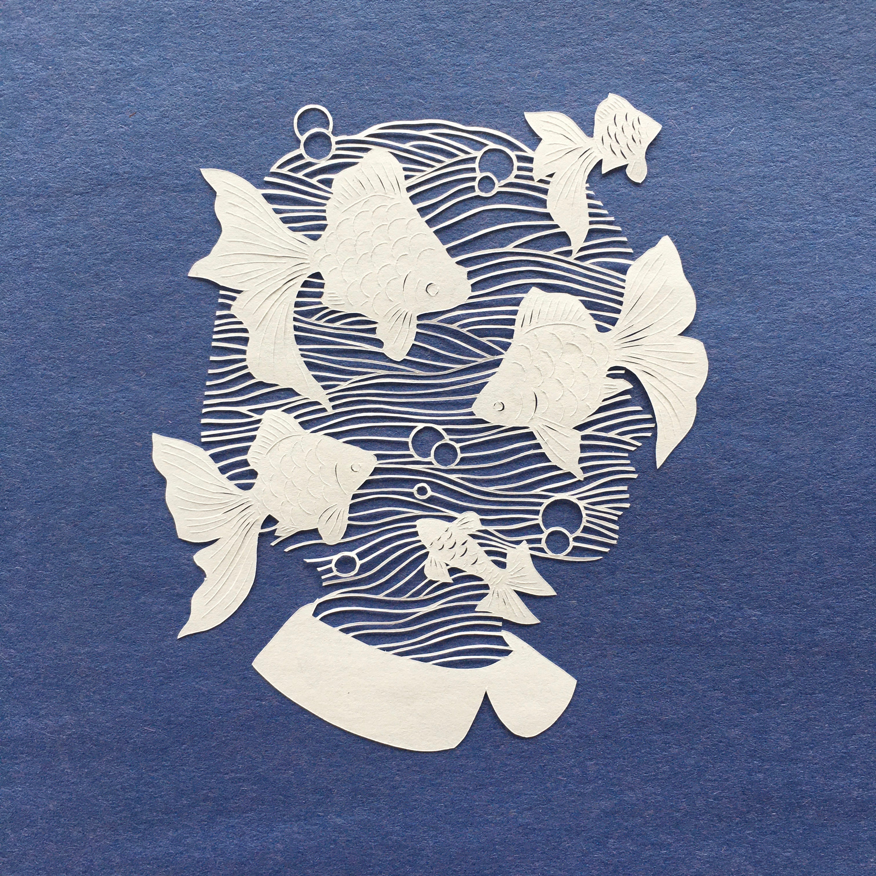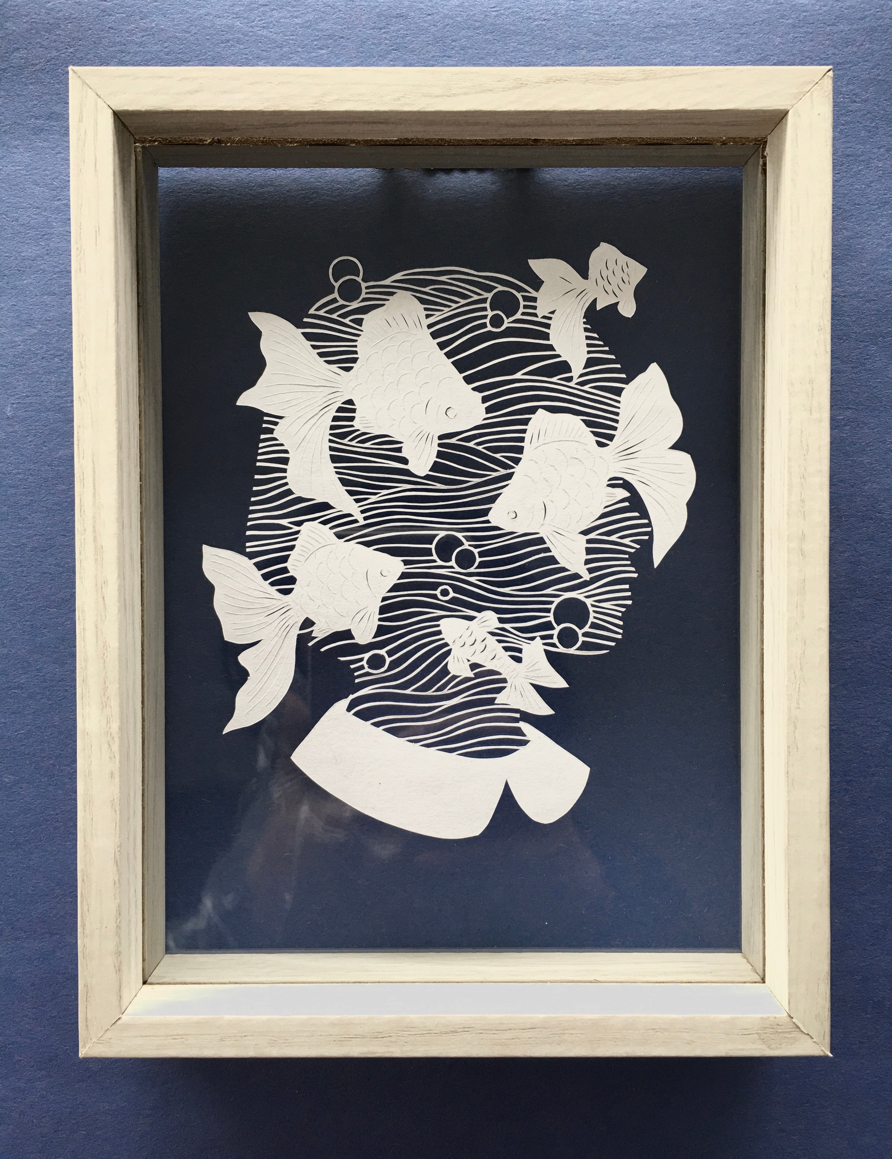 Artwork measures 5.5 x 7.5 inches. Cut Paper Art.