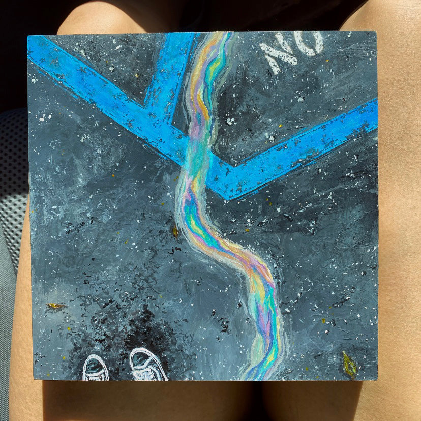 Artwork measures 8 x 8 x 1.5 inches. Acrylic on Wood Panel.