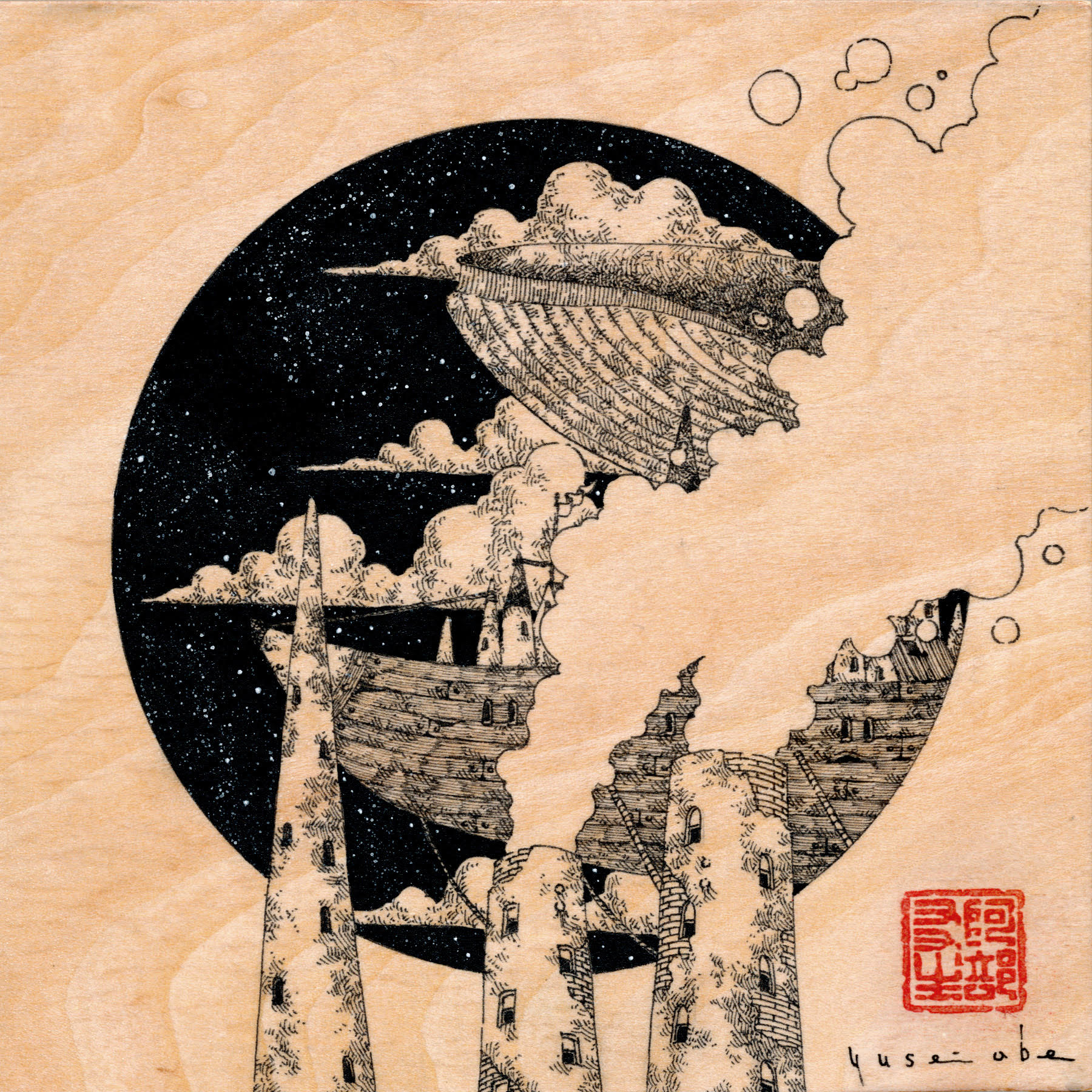Artwork measures 6 x 6 inches. Pen and Gouache on Wood Panel.