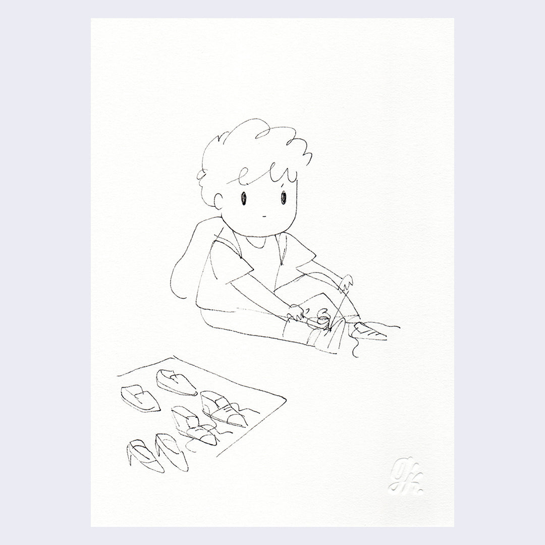 Artwork measures 5 x 7 inches, framed piece measures 8.5 x 10 inches.