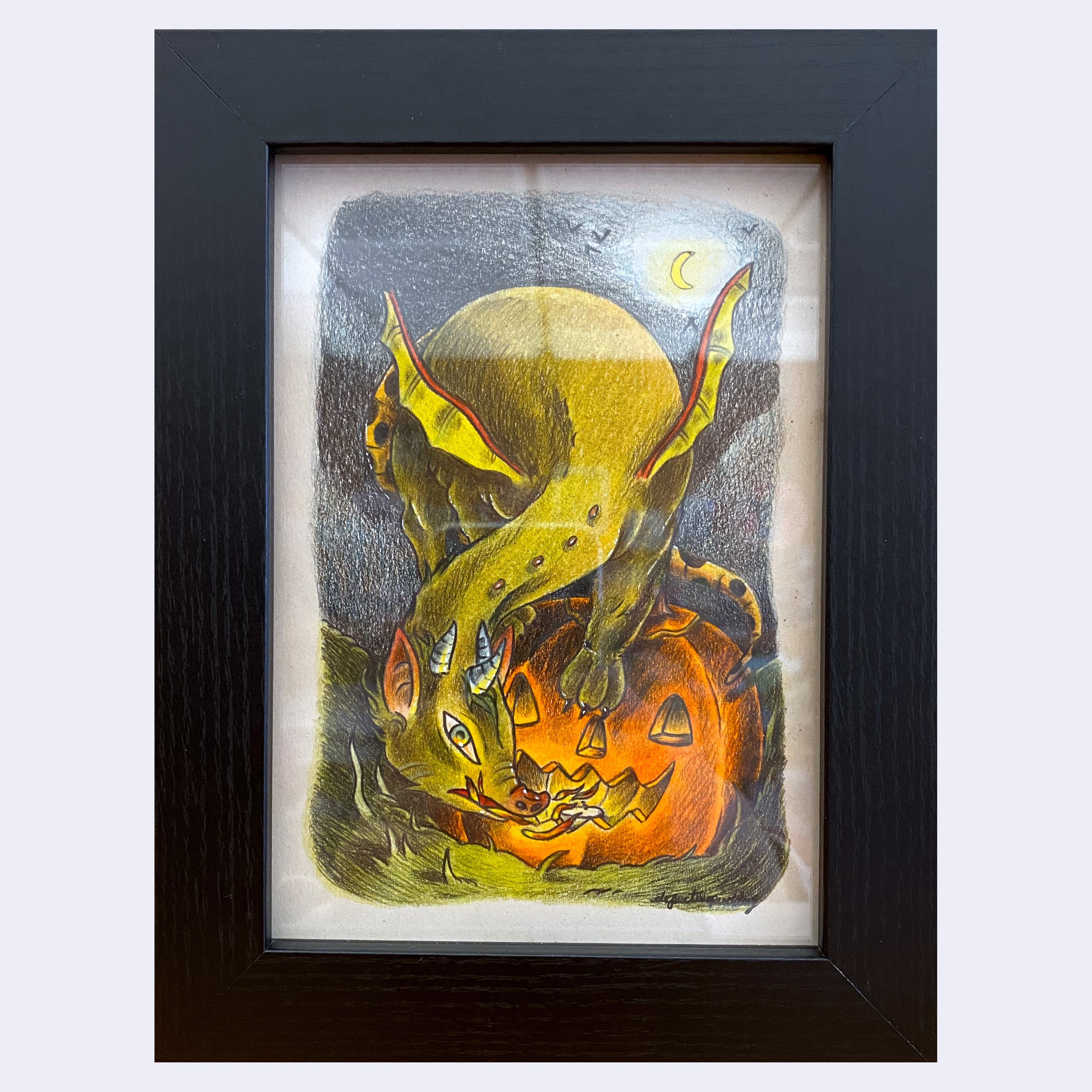 Artwork measures 5 x 7 inches, framed to 7 x 9 inches.