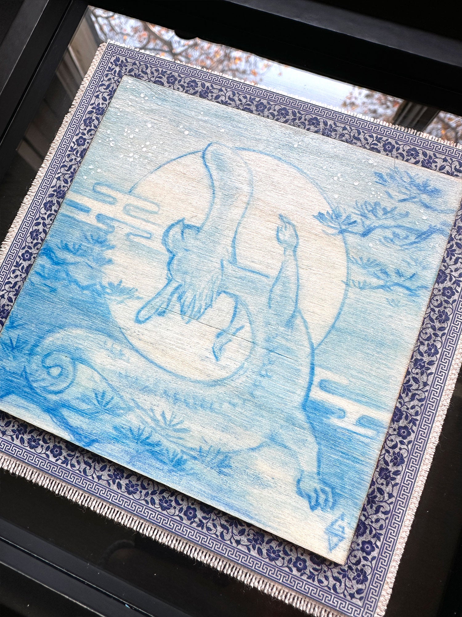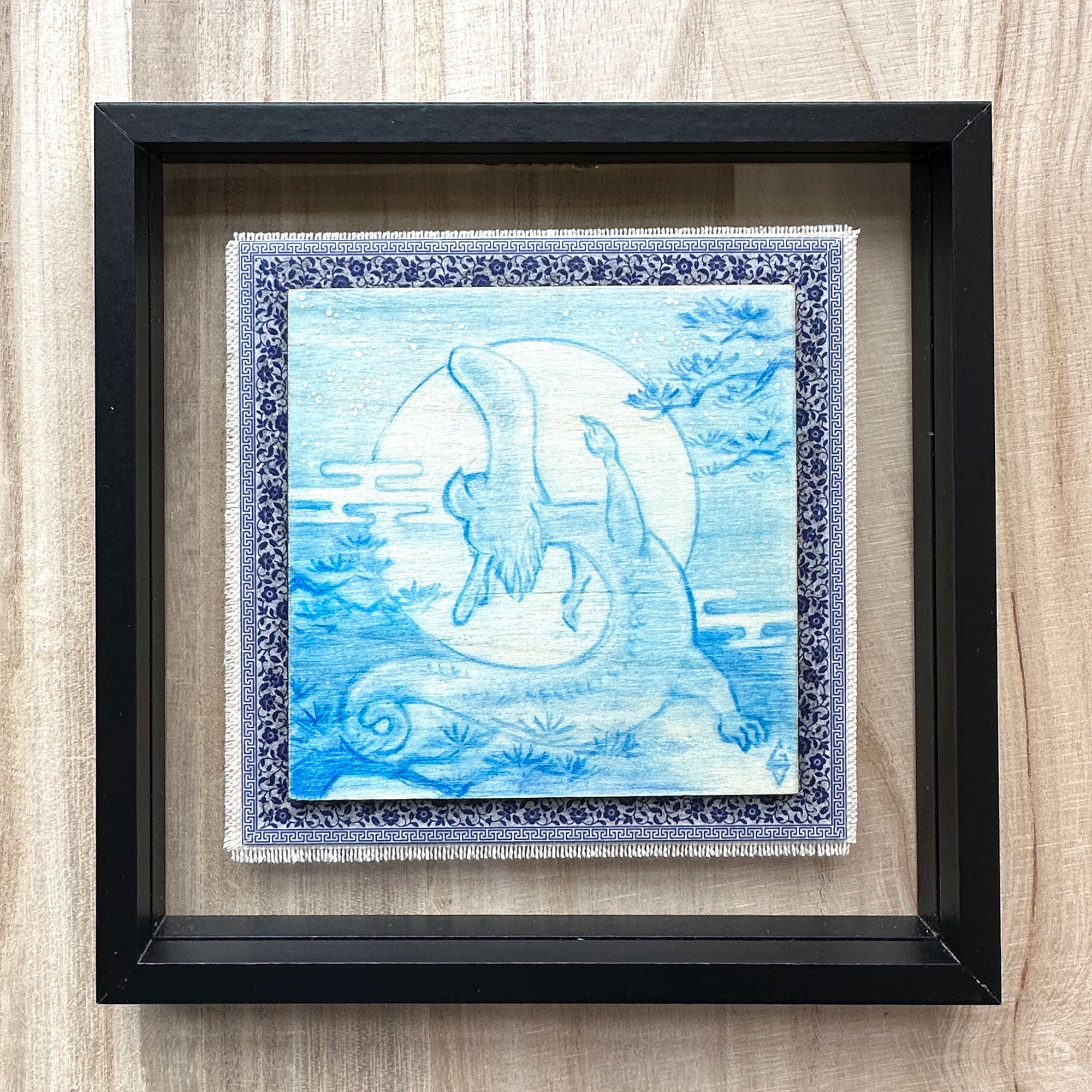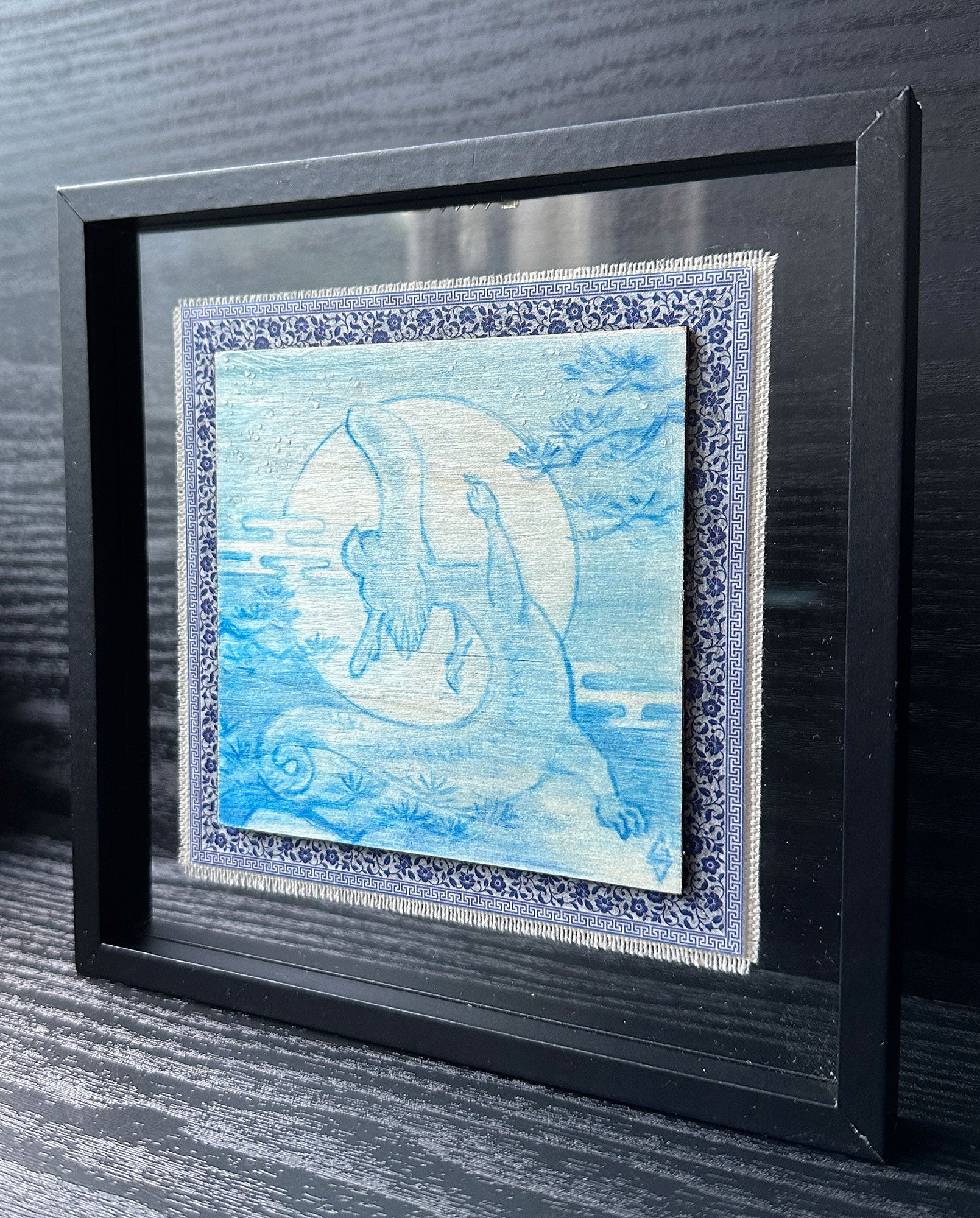 Artwork measures 4 x 4 inches, framed to 7 x 7 inches.