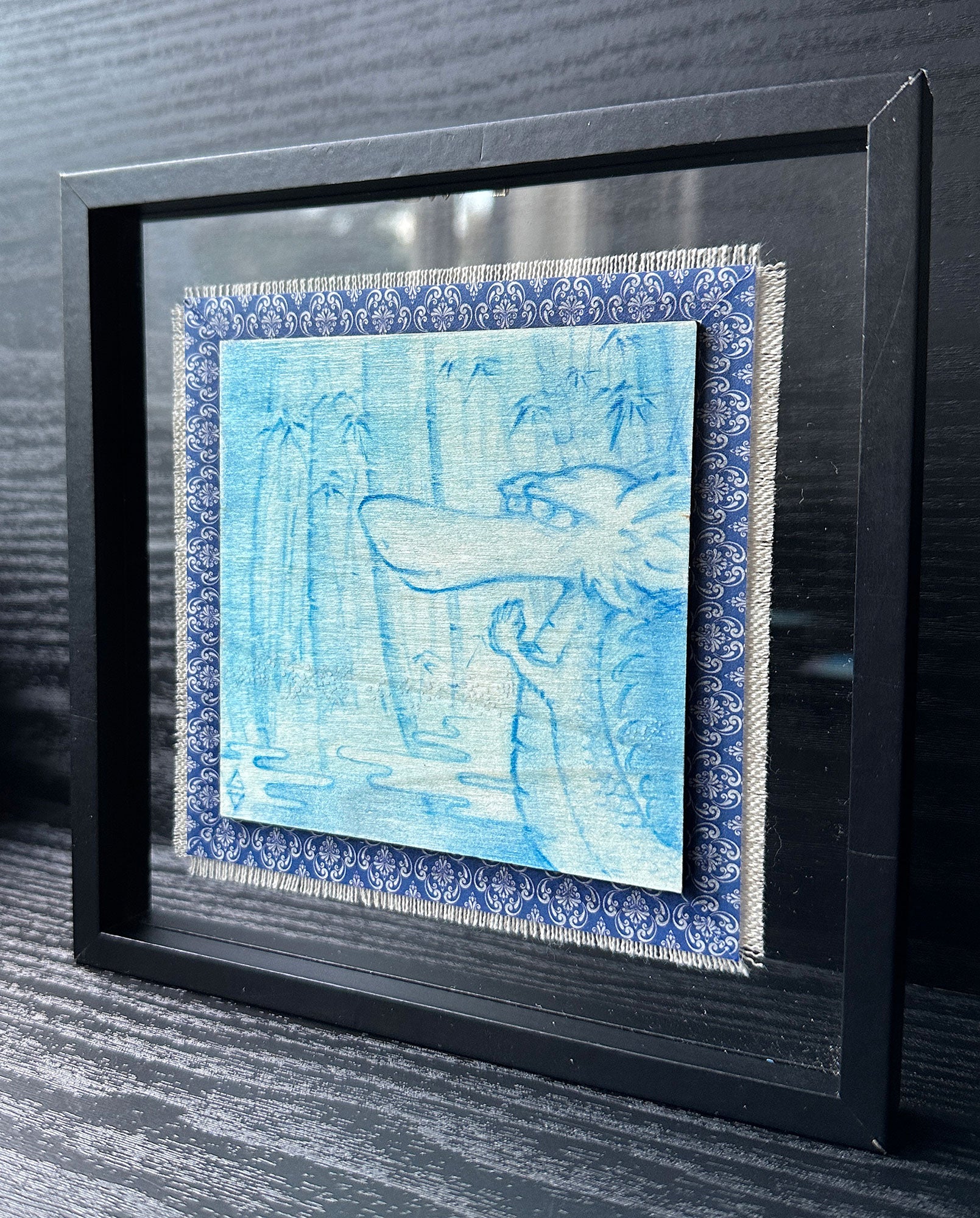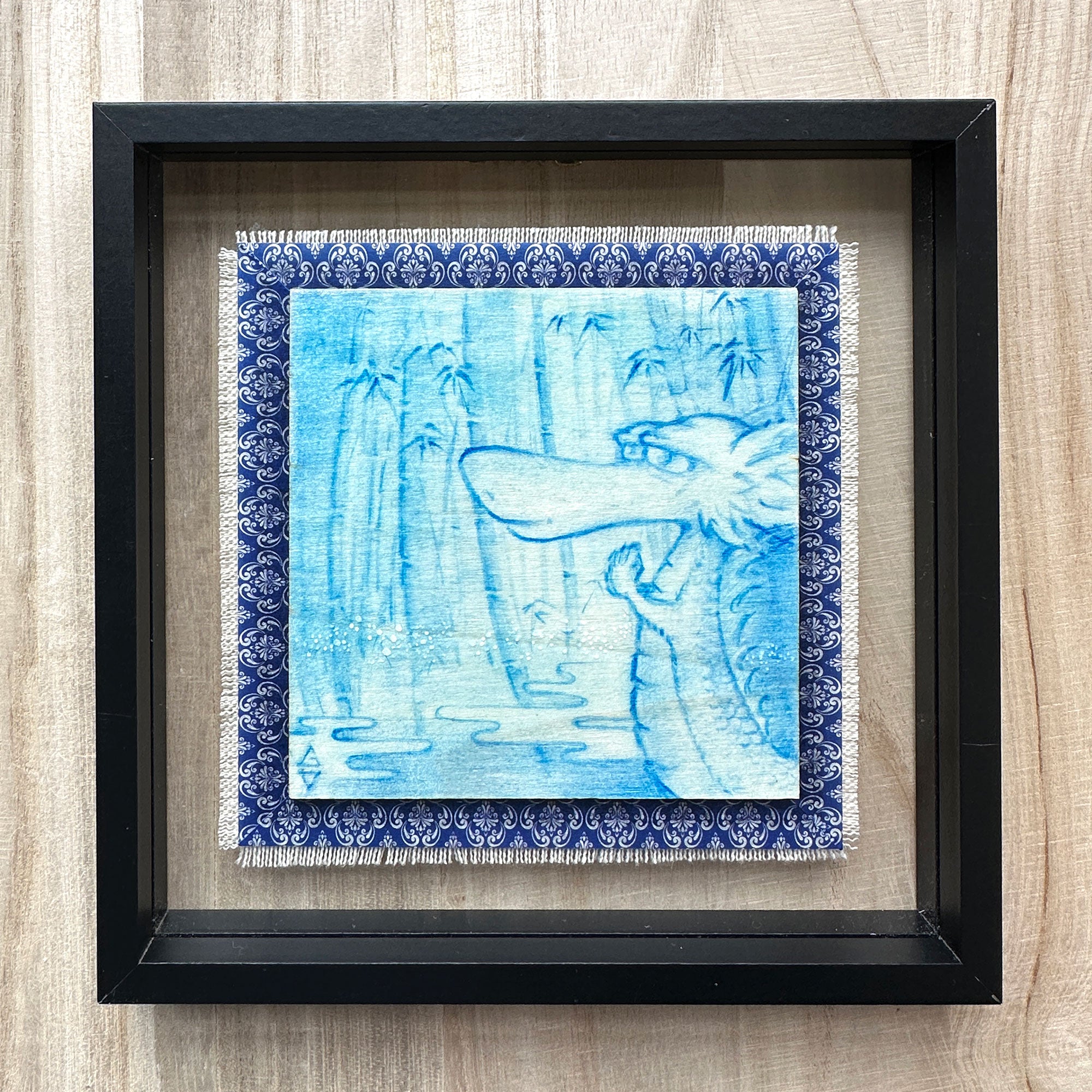 Artwork measures 4 x 4 inches, framed to 7 x 7 inches.