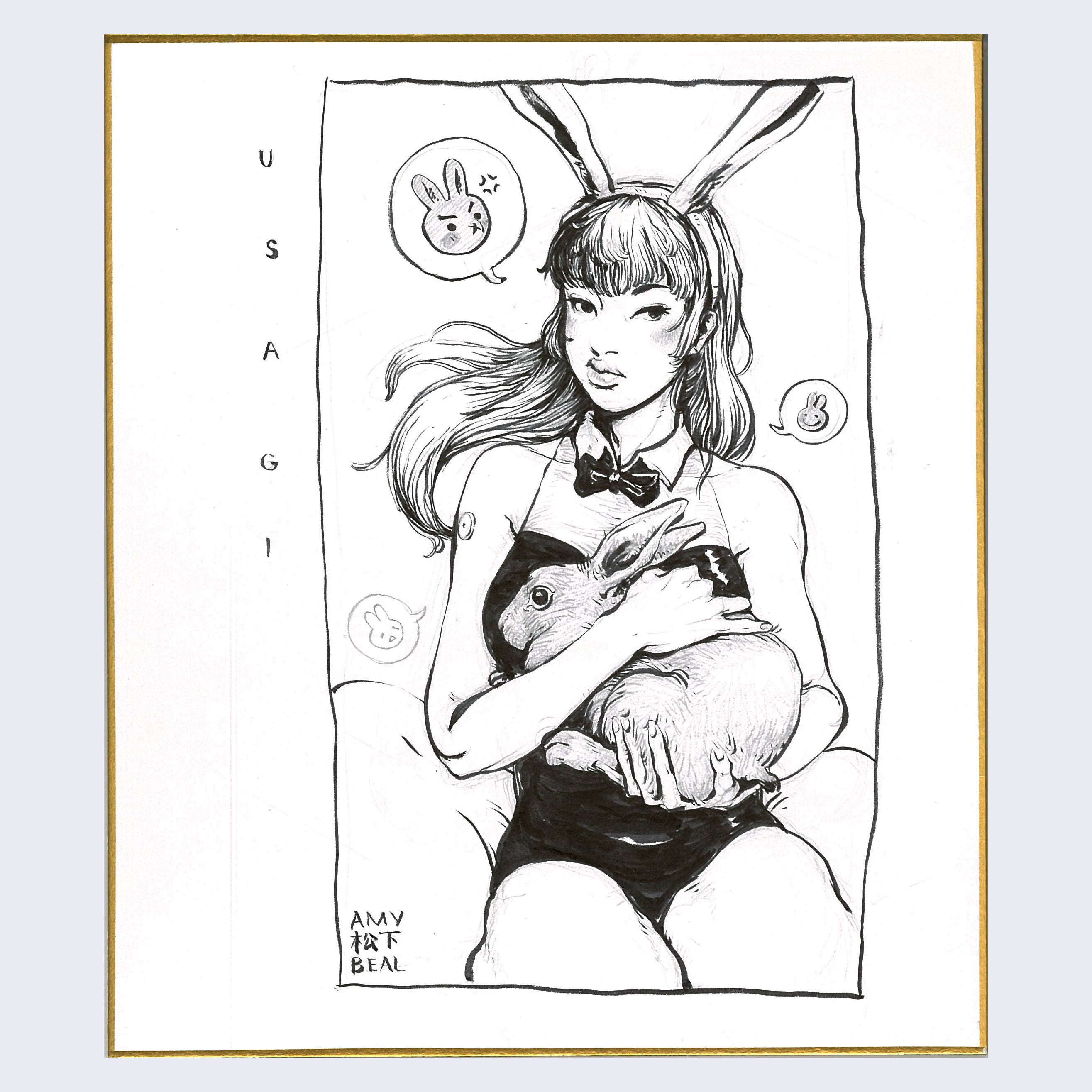 Ink and graphite on shikishi board. Piece is unframed.