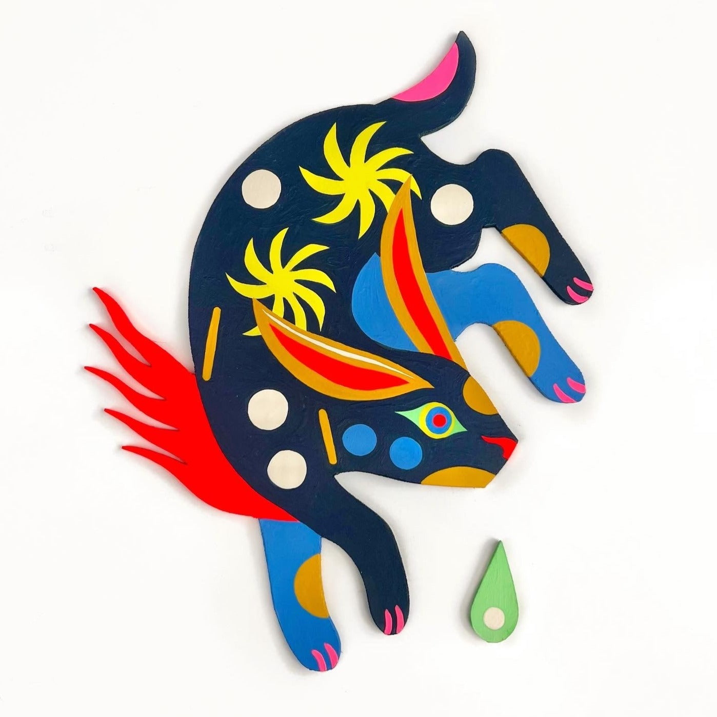 Acrylic gouache and latex paint on hand shaped plywood.