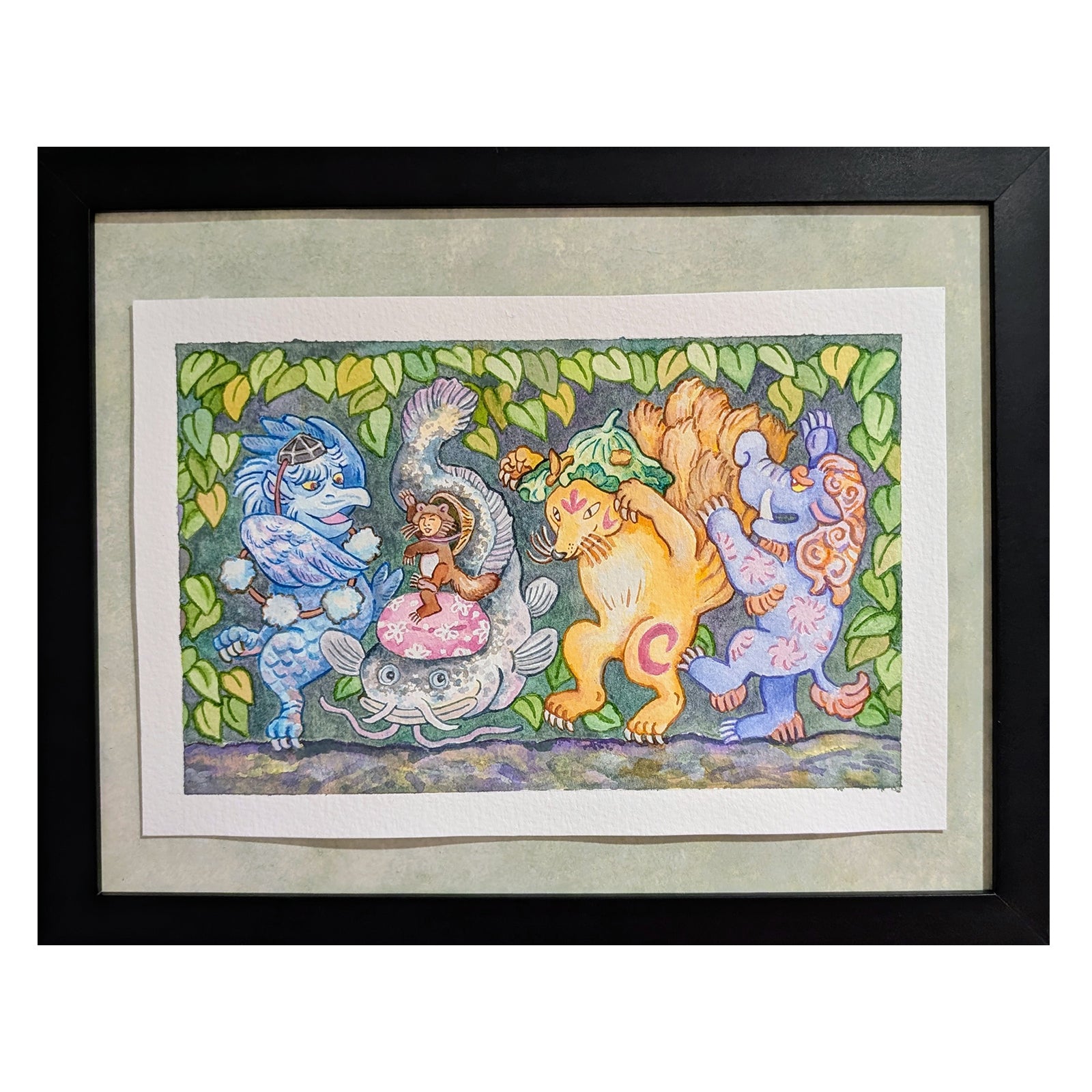 Watercolor and gouache. Piece is framed.