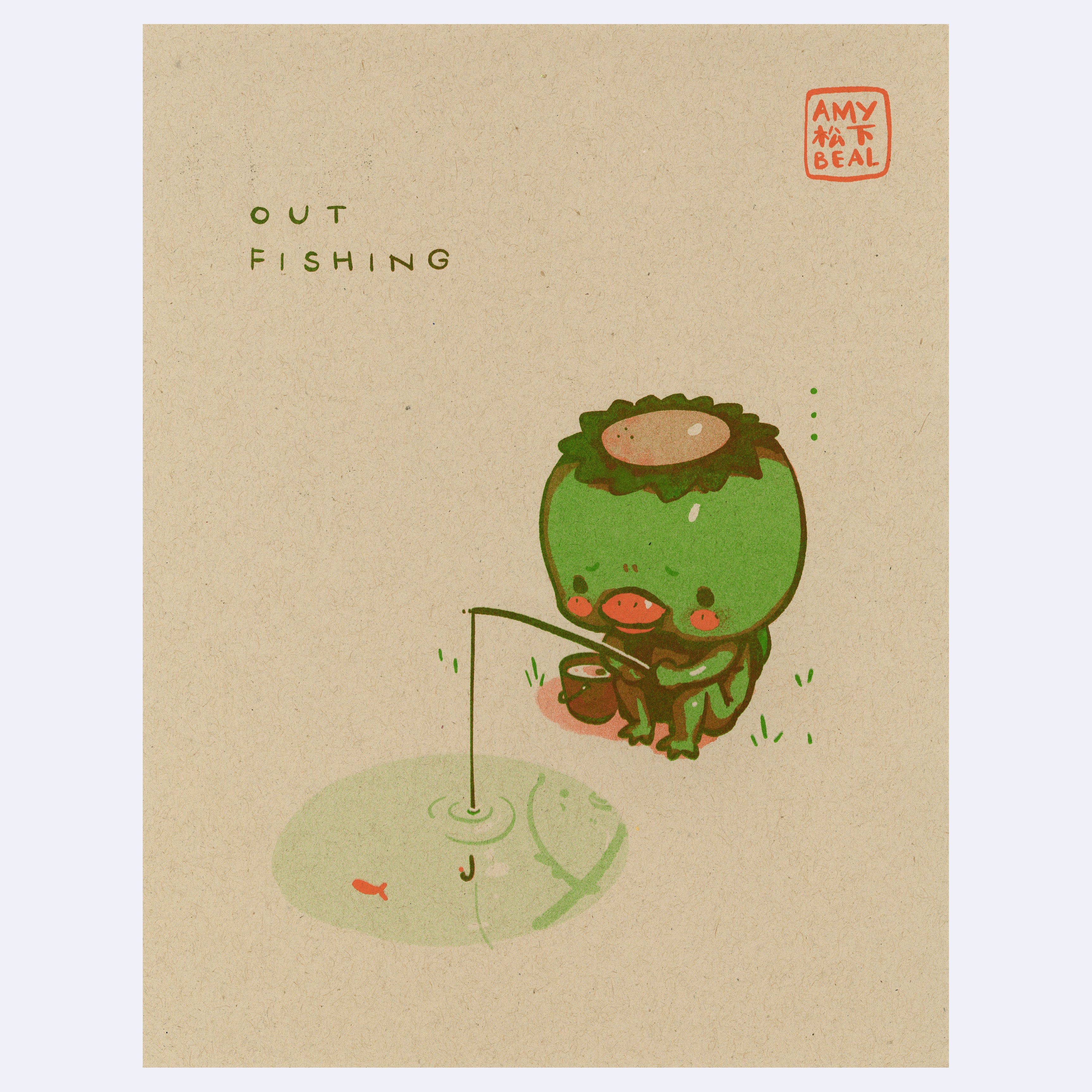 Yokai 2025 - Amy Matsushita-Beal - "Kappa Out Fishing" Risograph