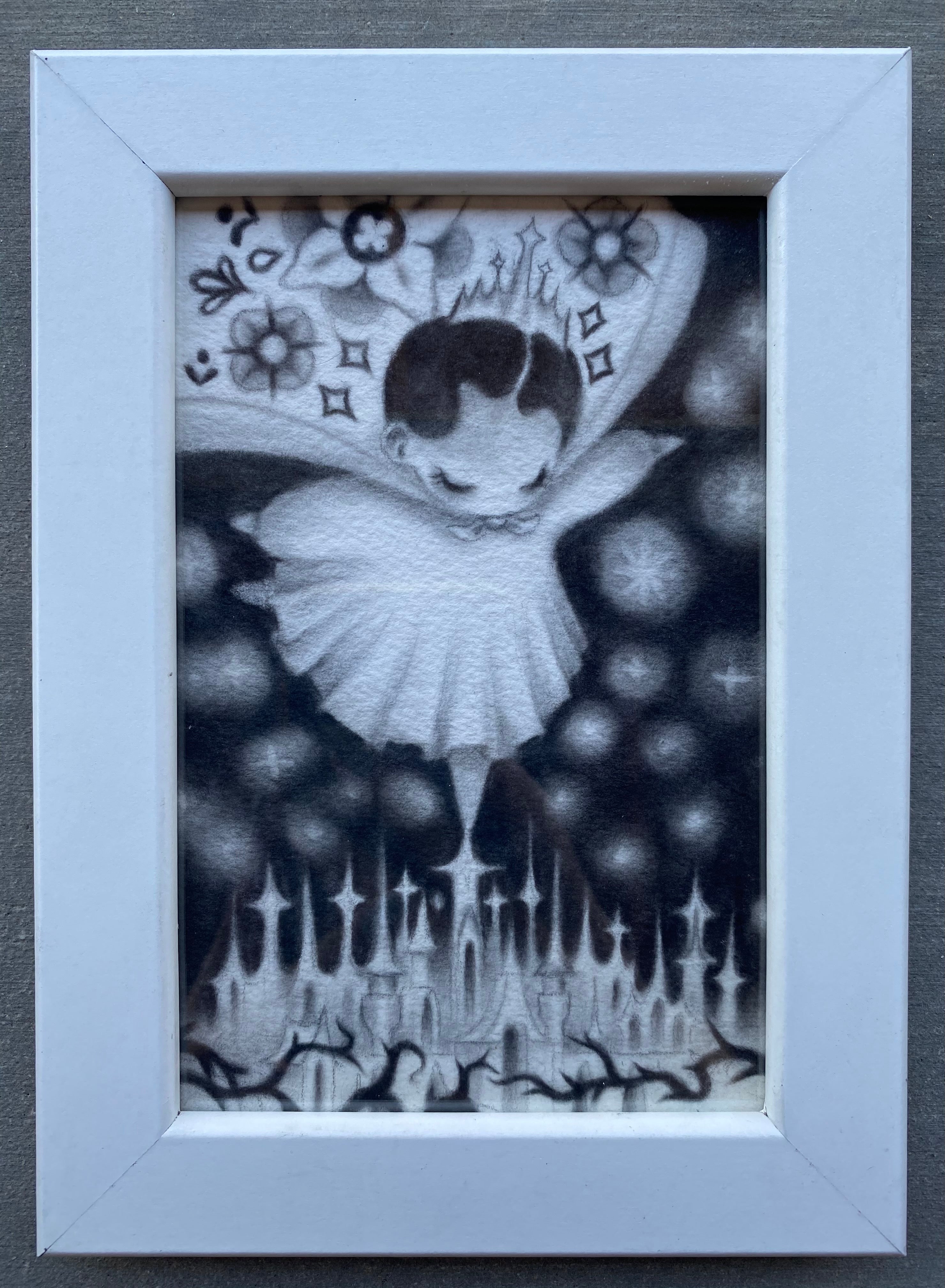 Artwork measures 3.9 x 5.9 inches, 5.1 x 7.1 inches framed.
