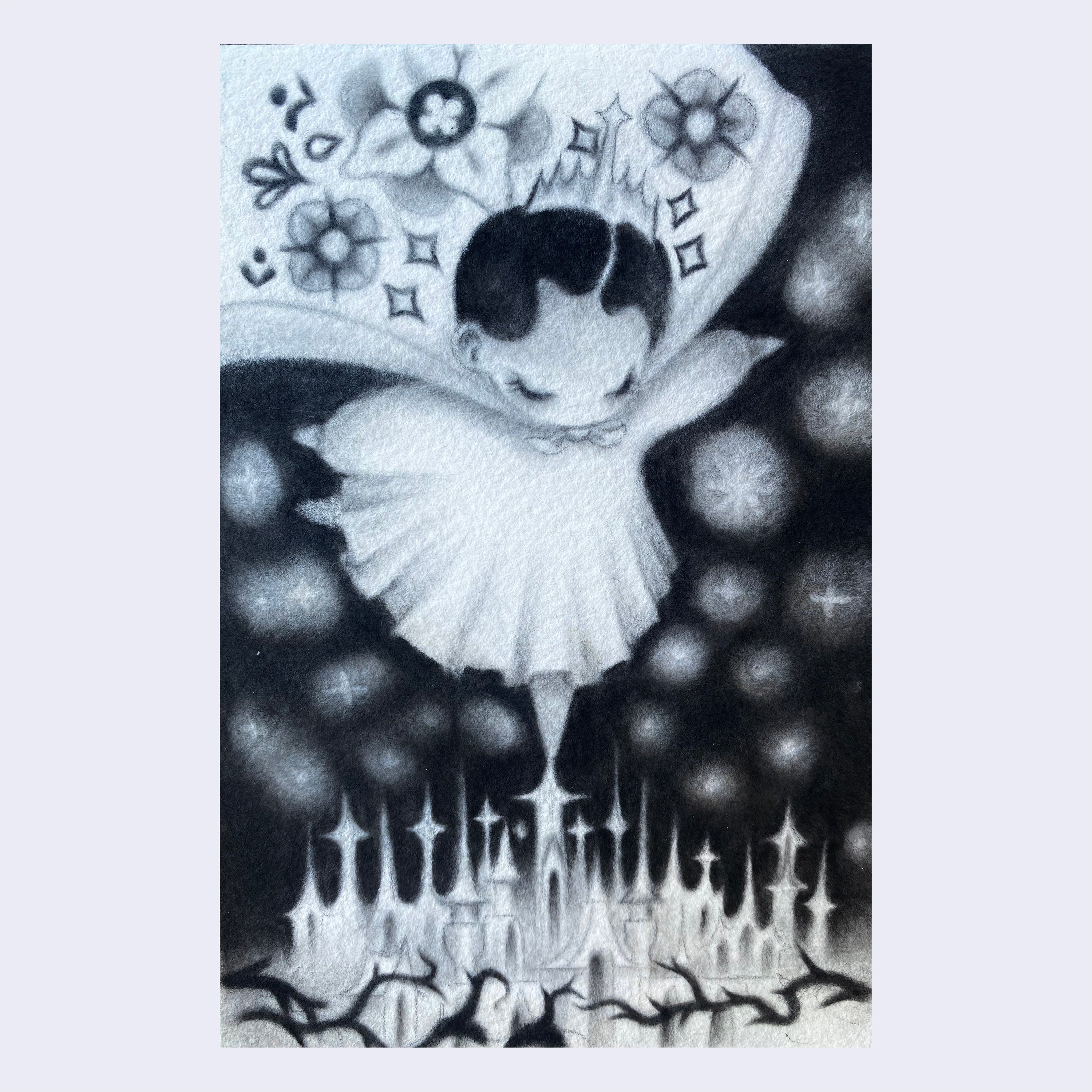 Charcoal and carbon powder on Arches watercolor paper. Piece is framed.
