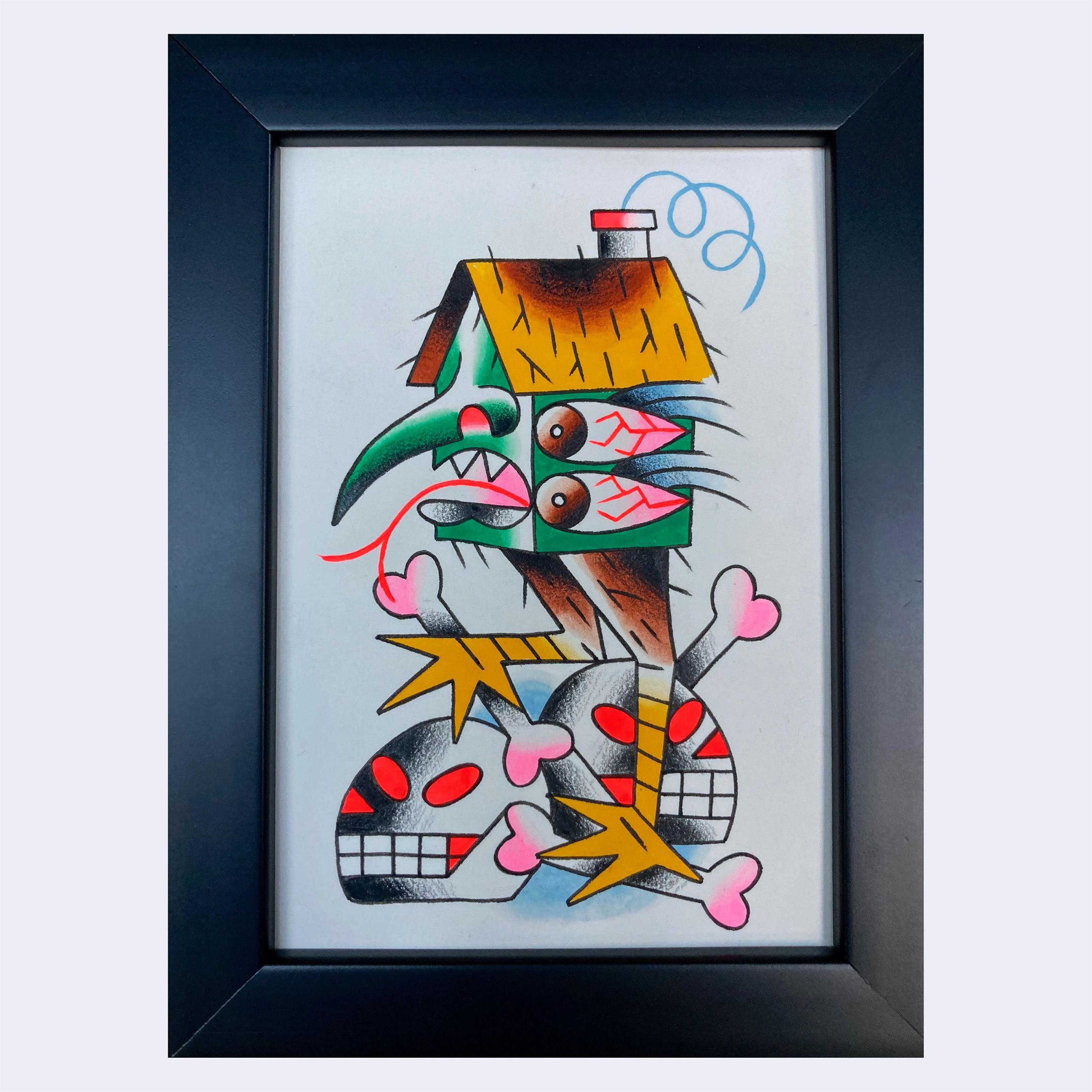 Acrylic Gouache on Watercolor Paper. Piece is framed.
