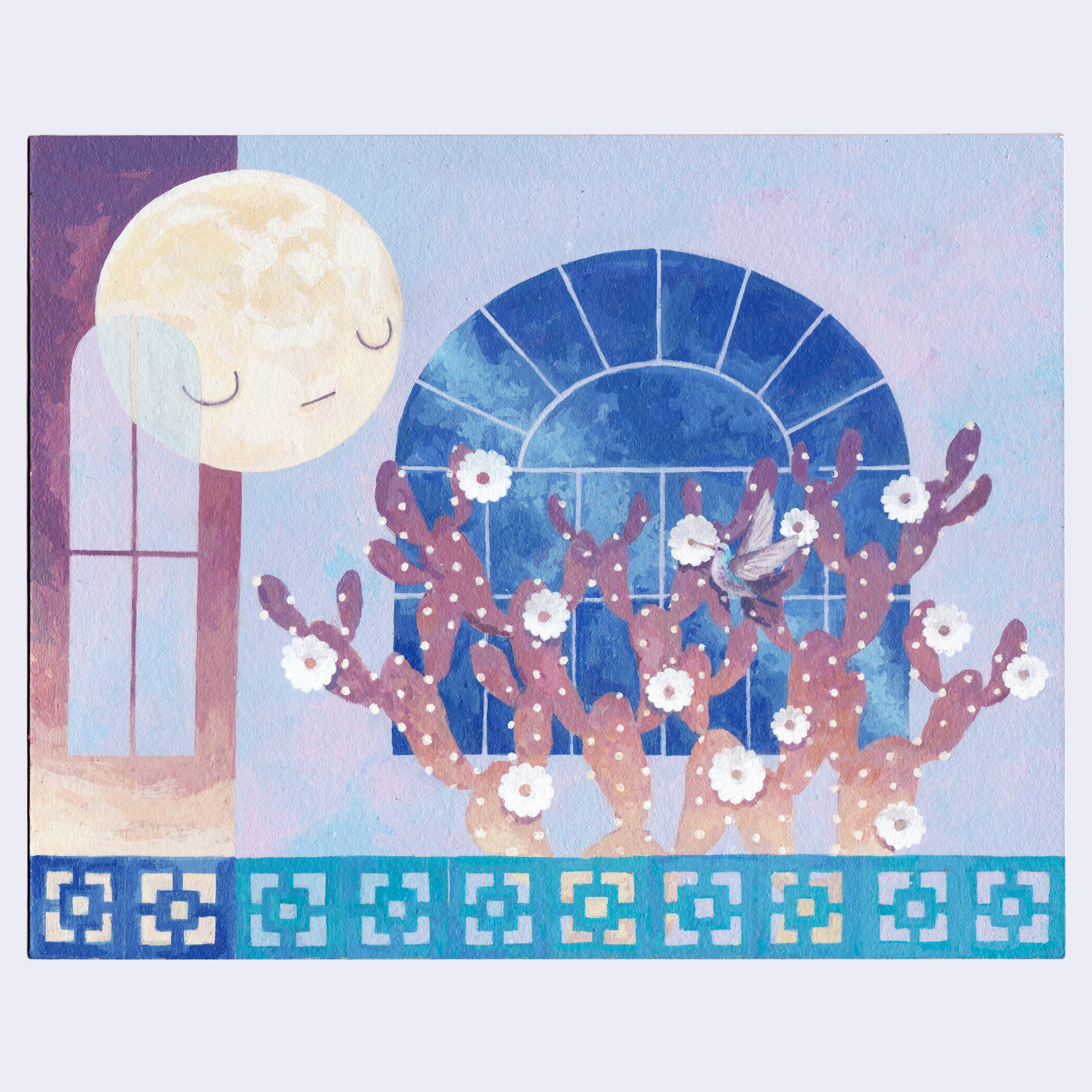 Acrylic on paper. Piece is framed.