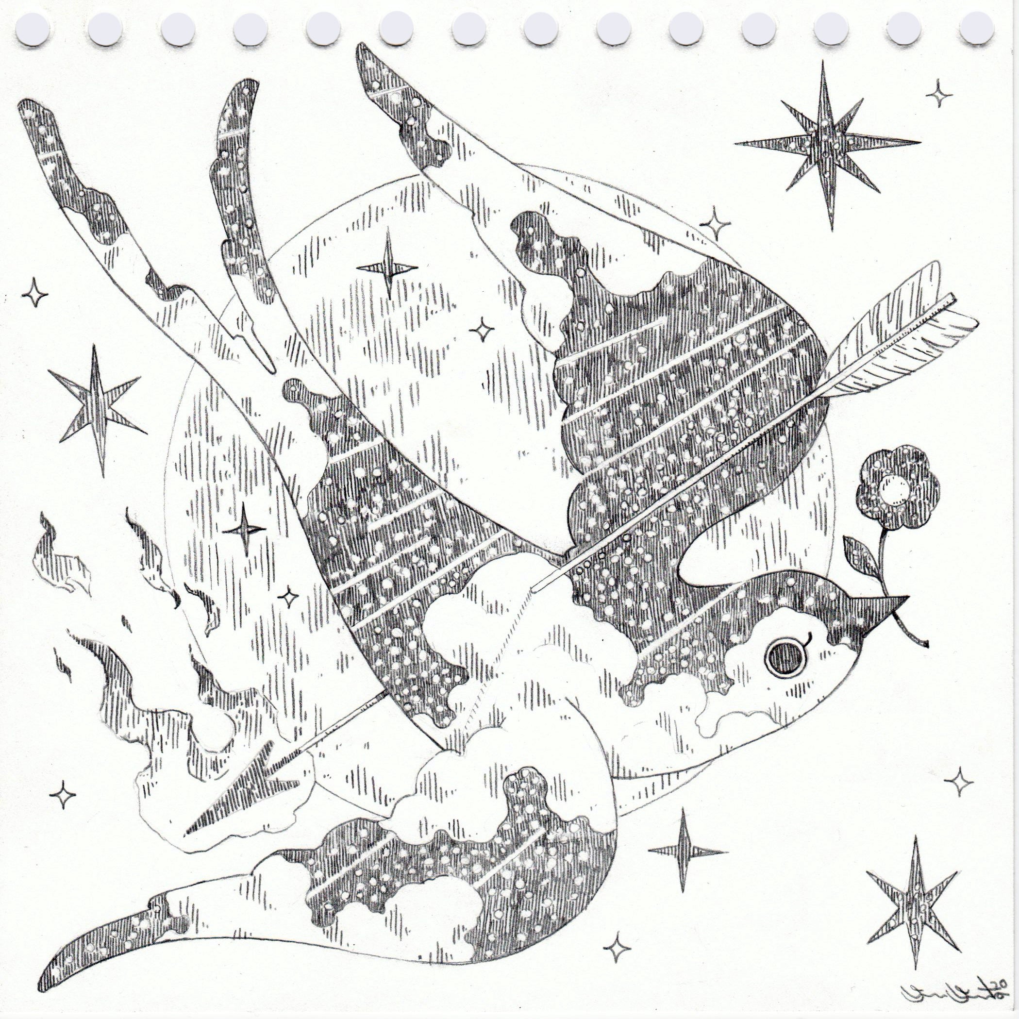 Yoskay Yamamoto - Flower Bird Wind Moon - "Sketch August 04"