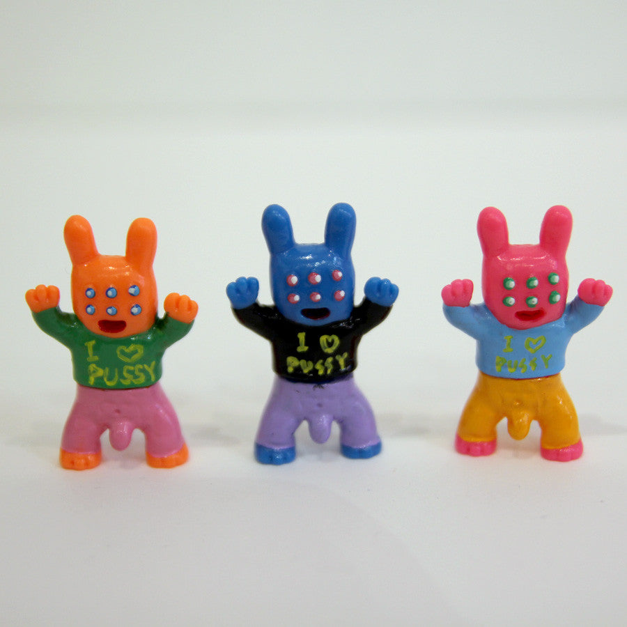 As part of Yukinori Dehara's solo show at our Giant Robot 2 gallery. Cool little set of three vinyl sex crazed Morlin figures. A diverse group of three clothed Morlin, hand painted by the artist!
