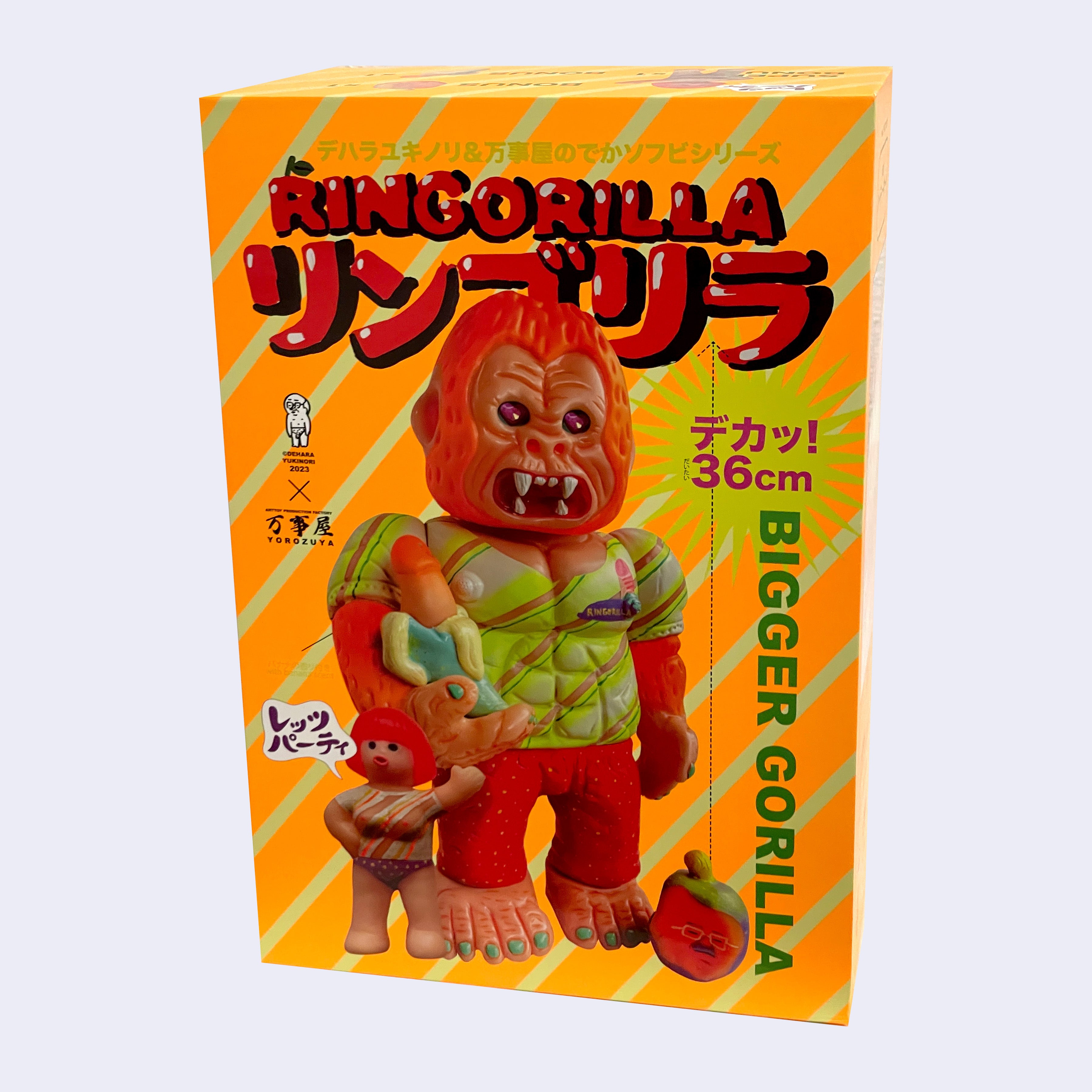 An iconic character by Yukinori Dehara, in its newest form! In collaboration with YOROZUYA, Dehara's "Ringorilla" stands before you in vinyl sofubi form, looking like a very flashy gorilla.