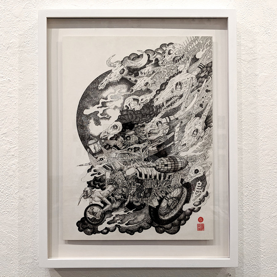 Drawing measures 14.5 x 20 inches floating within the frame.