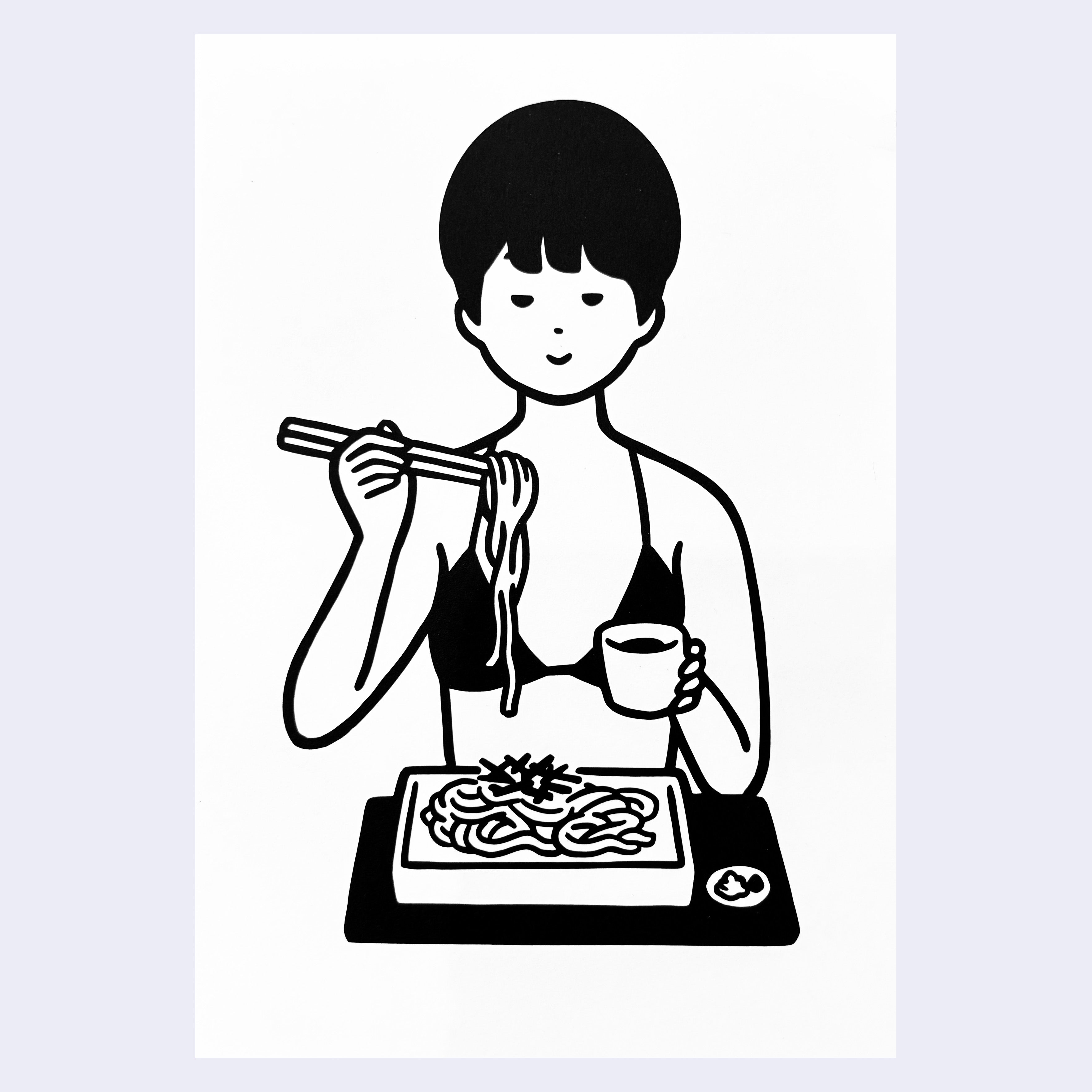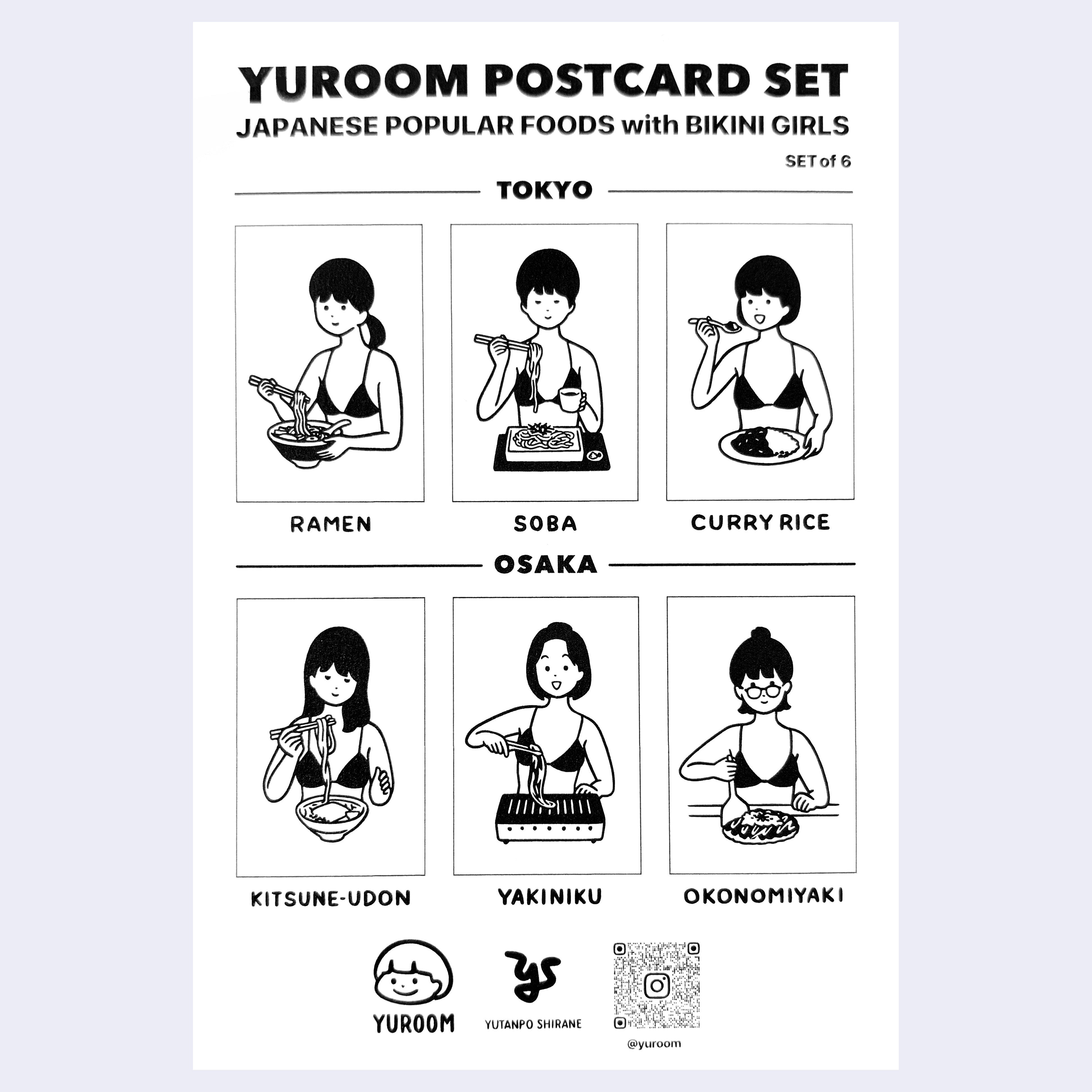 Collection of postcards by Yutanpo Shirane (yuroom) featuring sleek line art of women enjoying the foods of Japan! Keep as a small work of art, or send to friends.